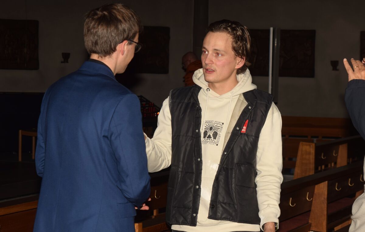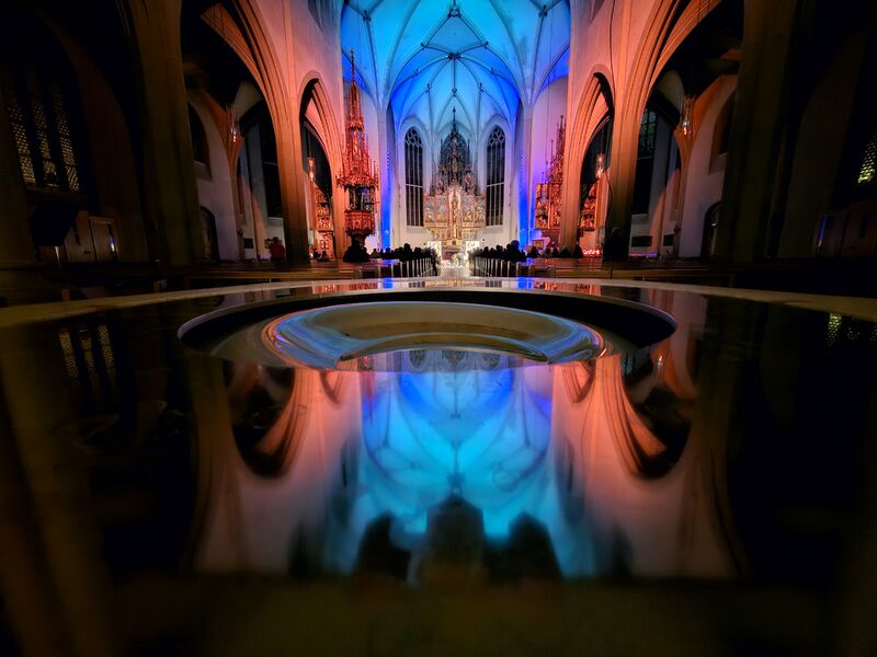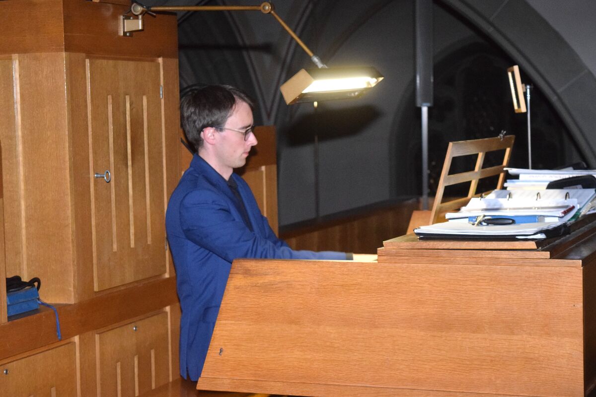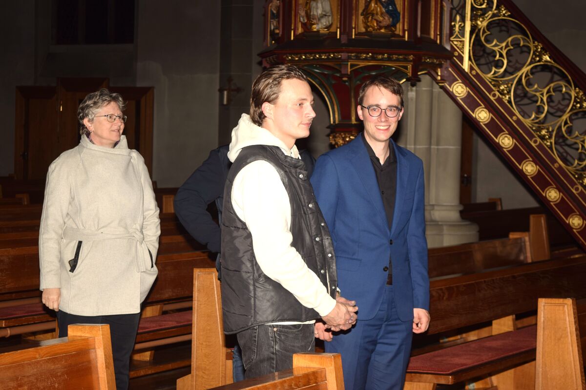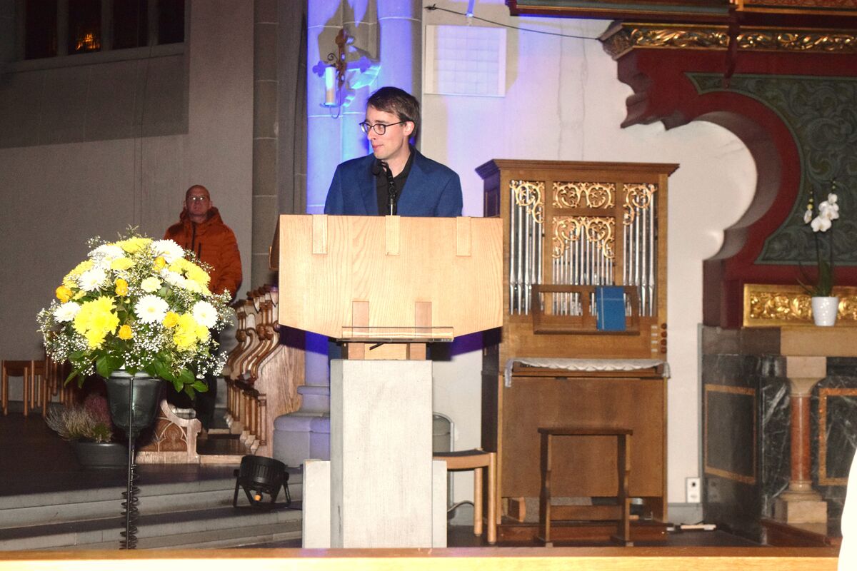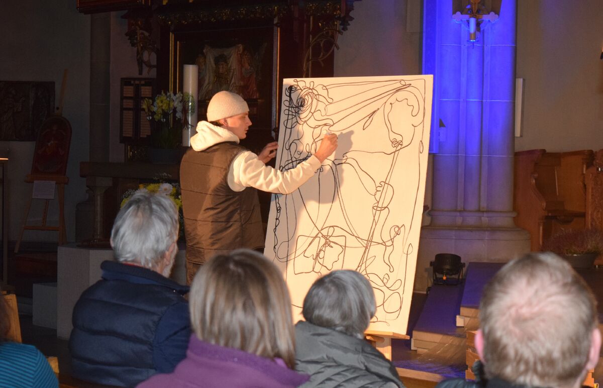 «Farbenklänge» heisst das aussergewöhnliche Kunstprojekt, das am zweitletzten November-Wochenende in der Otmar-Kirche stattgefunden hat. Farben und Klänge suchten gemeinsame Wege. Das Malen mit Pinseln, Spraydosen und Filzstiften übernahm der Schaffhauser Malkünstler Keanu Rehter. Über ein Stunde lang liess er sich pausenlos treiben von der Musik des Organisten Johannes Lienhart. Die beiden haben sich gegenseitig inspiriert und etwas Einmaliges entstehen lassen. Über 100 Zuschauer haben sich dieses Experiment nicht entgehen lassen und zugeschaut, wie in diesen Momenten zwei Bilder entstanden. Eines davon zeigt den Heiligen Otmar. Es kann erworben werden.