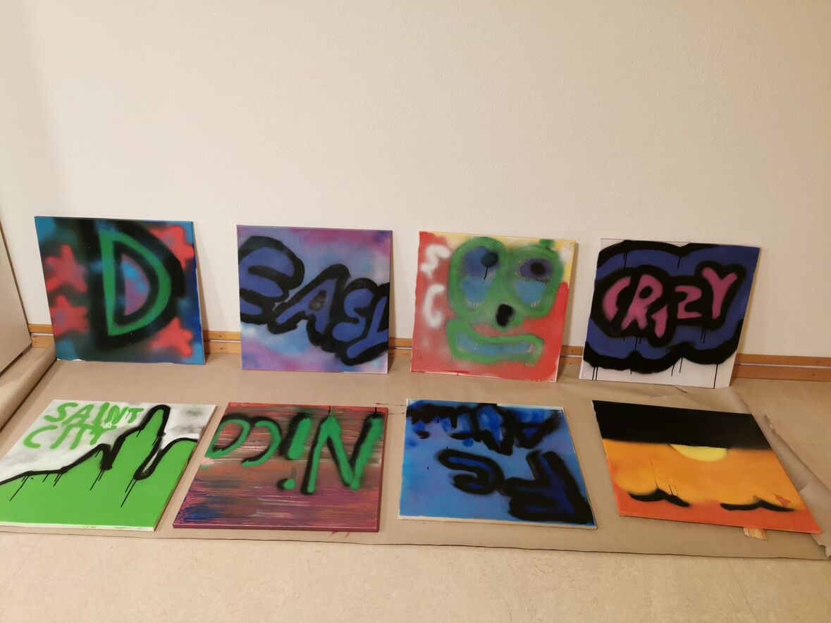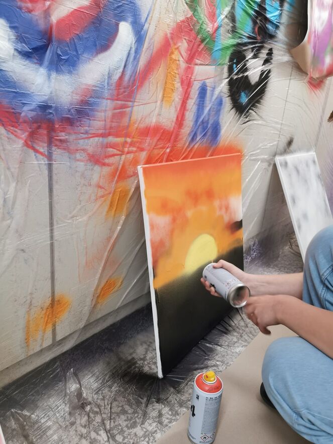 Unter der Anleitung von Tim lernten unsere Minis beim letzten Höck in diesem Jahr wie das Sprayen funktioniert. Zum Einstieg wurde ein Tic tac toe Spiel gespielt damit die Teilnehmenden ein Gefühl für den Umgang mit der Spraydose entwickeln konnten. Anschliessend durften sie ihrer Kreativität freien Lauf lassen und zuerst auf Packpapier, dann auf einer Leinwand sprayen. Dabei entstanden viele beeindruckende und individuelle Kunstwerke.