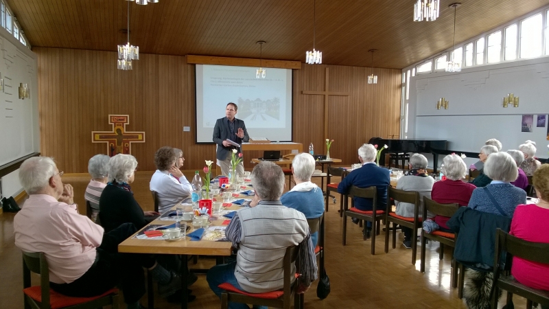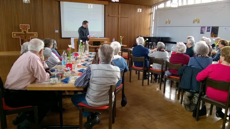 Heute durften wir Pfarrer Markus Anker, Seelsorger der Universität St. Gallen, im evang. Kirchgemeindehaus Winkeln begrüssen. In seinem Referat mit dem Titel «Das Paradies» zeigte er verschiedene Erklärungsansätze zum Paradies auf. In seiner Präsentation illustrierte er anschaulich, wie sich die Vorstellungen und die bildlichen Darstellungen zum Paradies im Laufe der Geschichte verändert haben. Den 27 interessierten Gästen wurde zum Abschluss ein feiner z'Vieri offeriert. Bei Kaffee und Rüebli-Cake wurde im gemütlichen Rahmen untereinander noch lange rege diskutiert. Ein herzliches Danke-schön geht an die freiwilligen Helferinnen, Isabelle Dörig, Matilda Raiciu, Monika Rutz und Ruth Willi sowie an die beiden Mesner Werner Keller und Ernst Sutter. Pfarrer Klaus Stahlberger wurde durch Barbara Rieder Steiger entschuldigt.