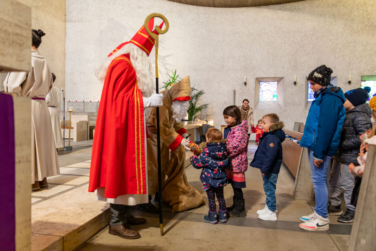 Es ist jedes Jahr wieder ein Highlight, wenn der hl. Nikolaus mit dem Schmutzli zu uns in den Gottesdienst kommt und den Kindern und den "erwachsenen Kindern" etwas über sich erzählt und am Ende Geschenke verteilt. Auch dieses Jahr hat er wieder allen ein Lächeln ins Gesicht gezaubert.