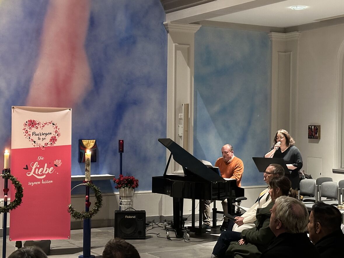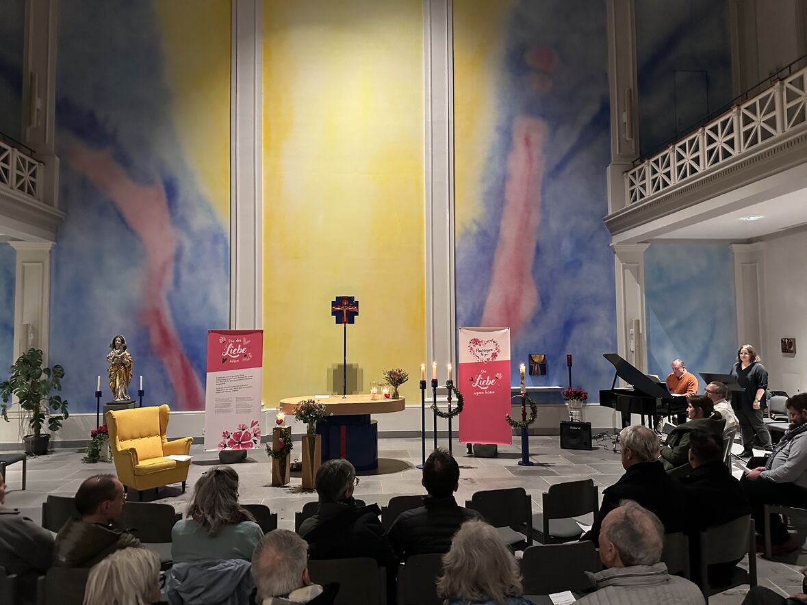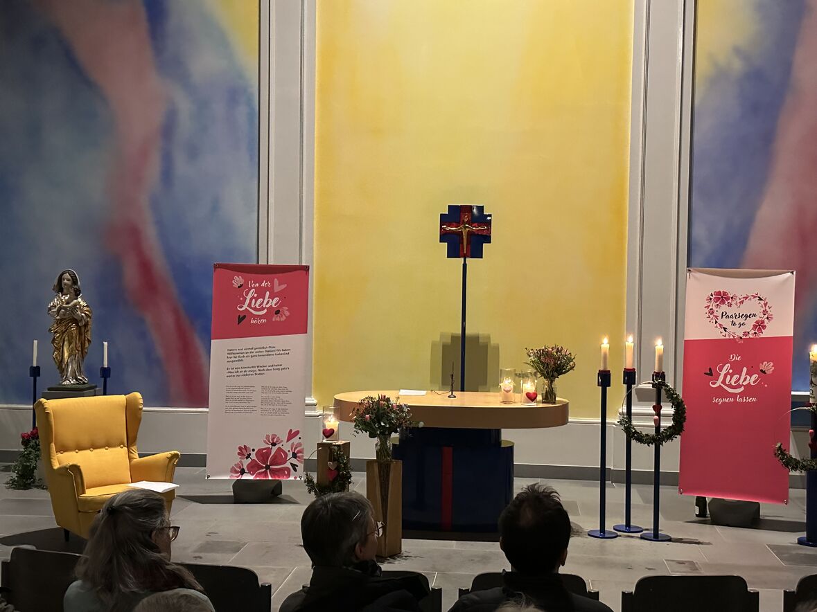 Am Abend des Valentinstags dann feierten Pfrn. Kathrin Bolt, P. Raffael Rieger und Matthias Wenk mit allerlei Liebenden in der Schutzengelkapelle die inzwischen traditionell gewordene Segensfeier. Claudia und Flo Vetsch erzählten dabei, wie sie in ihrer Paarbeziehung an ihrem hörenden Herzen füreinander arbeiten. Und Claudia Saborowski und Röbi Fricker verzauberten uns bei dieser Feier mit ihrer grossartigen Musik. Der Höhepunkt war der individuelle Segnung der Paare am Schluss der Feier - wie jedes Jahr tief berürhend!