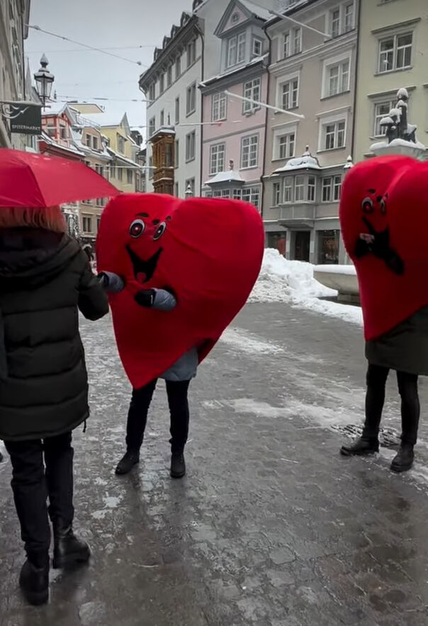 als Herzen verkleidet haben wir Menschen in den Gassen der St.Galler Altstadt dazu animiert, die Schutzengelkapellen zu besuchen. Dort erwarteten sie einige Stationen, die dabei behilflich sein sollten, ins Thema "Liebe" einzutuachen. Schliesslich konnte man sich dort dann segnen lassen - als Paar oder Single, denn die Liebe hat ja viele Formen.