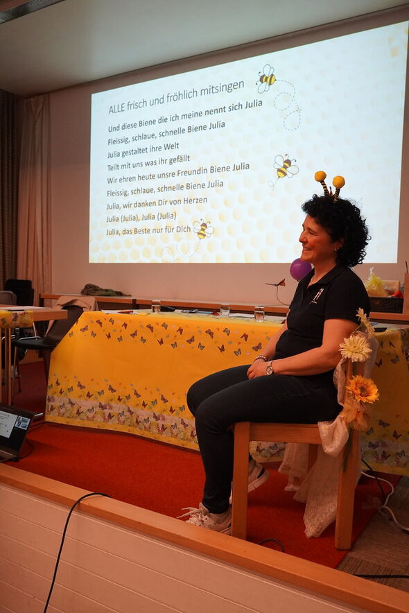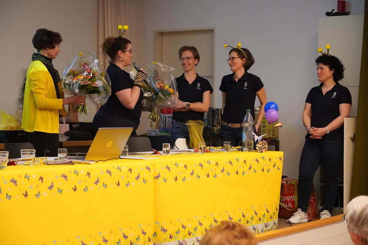 Ein weiterer emotionaler Moment folgte als sich die Präsidentin Julia Mock ebenfalls von ihrem Amt verabschiedete, begleitet von einem "schwirrenden Bienenschwarm" aus Vorstandsfrauen, die ihren Rücktritt zart und herzlich umrahmten.