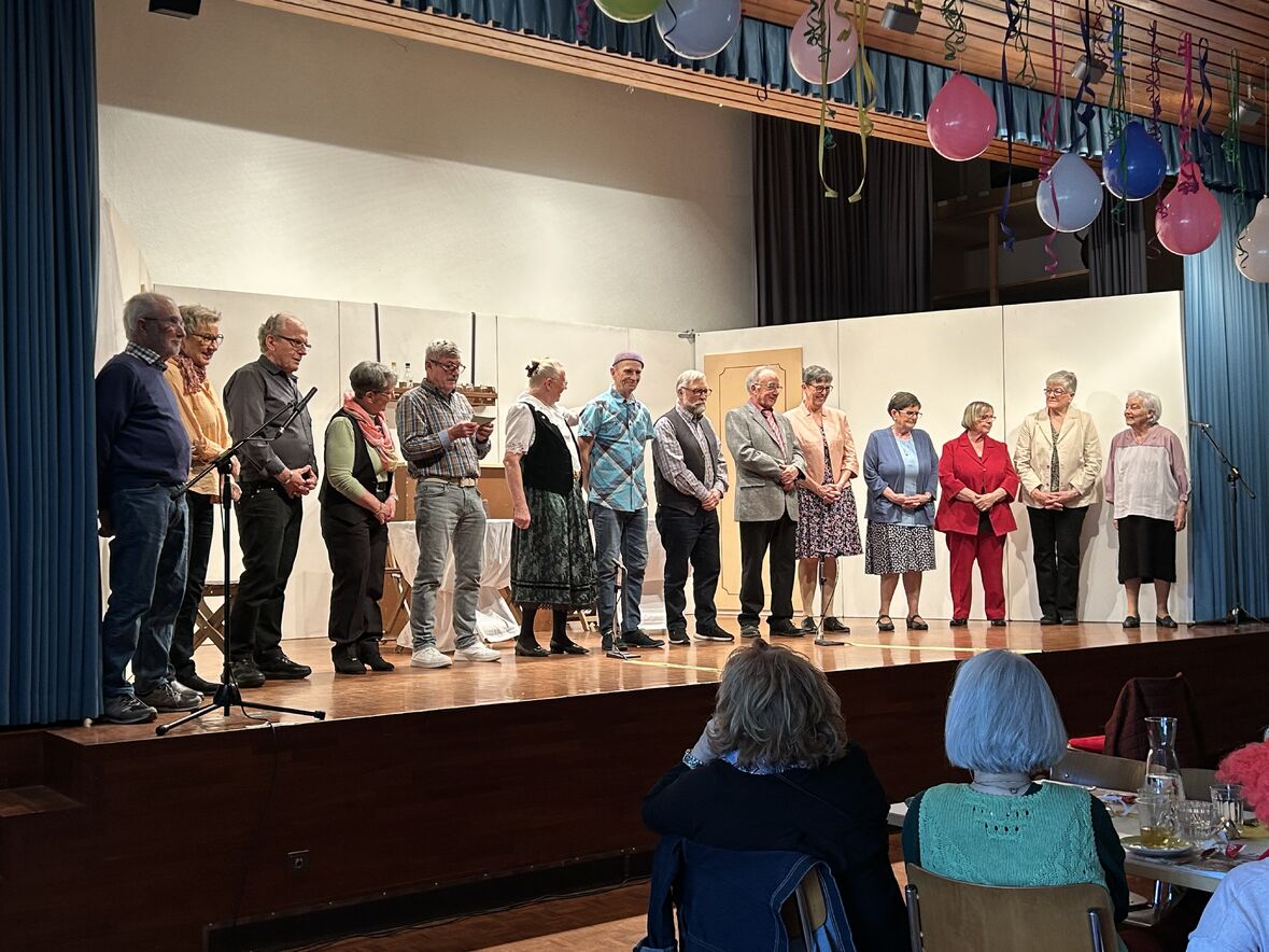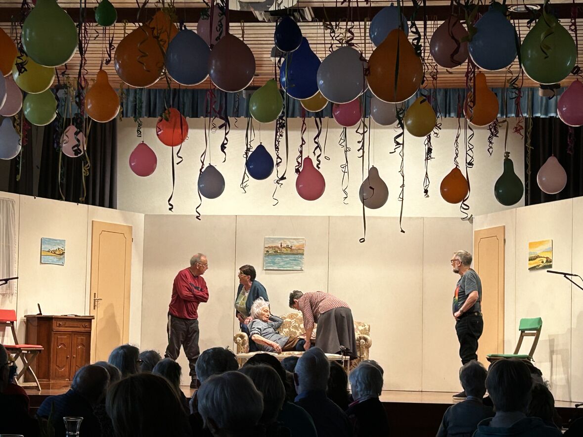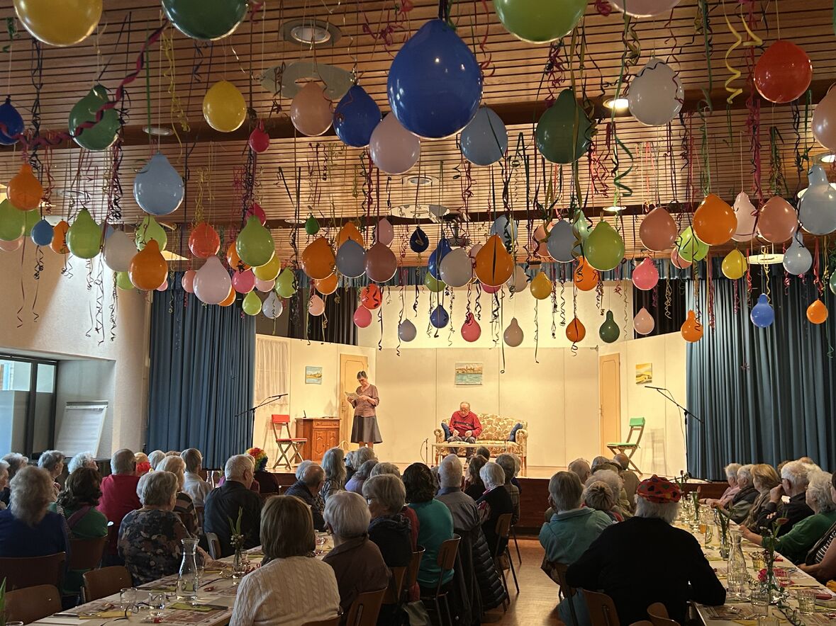 Im bunt geschmückten Saal genossen wir die Darbietung der Theatergruppe Silberfüchse mit ihrem Geburtstagsgeschenk. Kulinarisch verwöhnt und zufrieden verliessen die Besucher den Saal. Wir sagen danke!