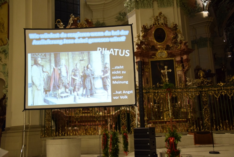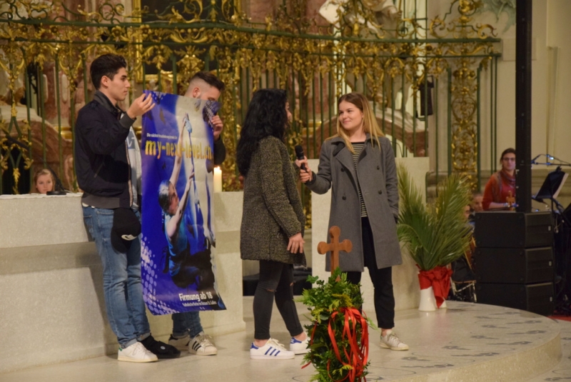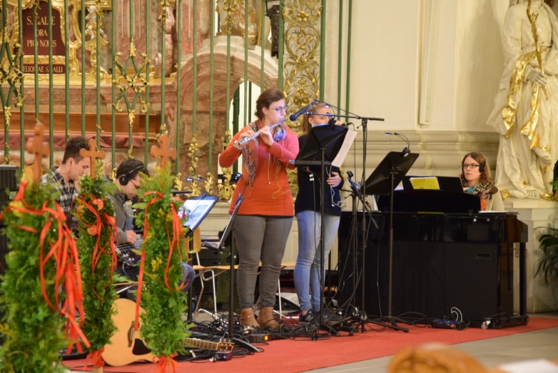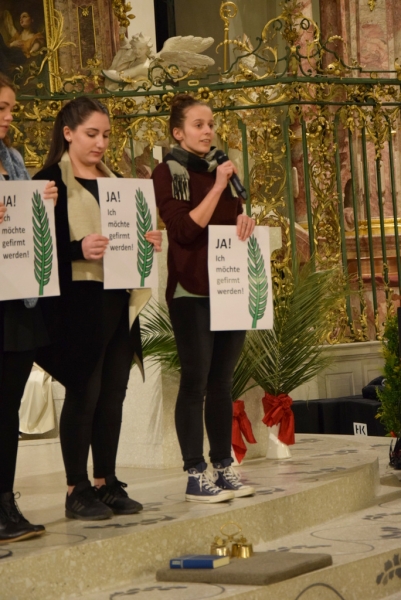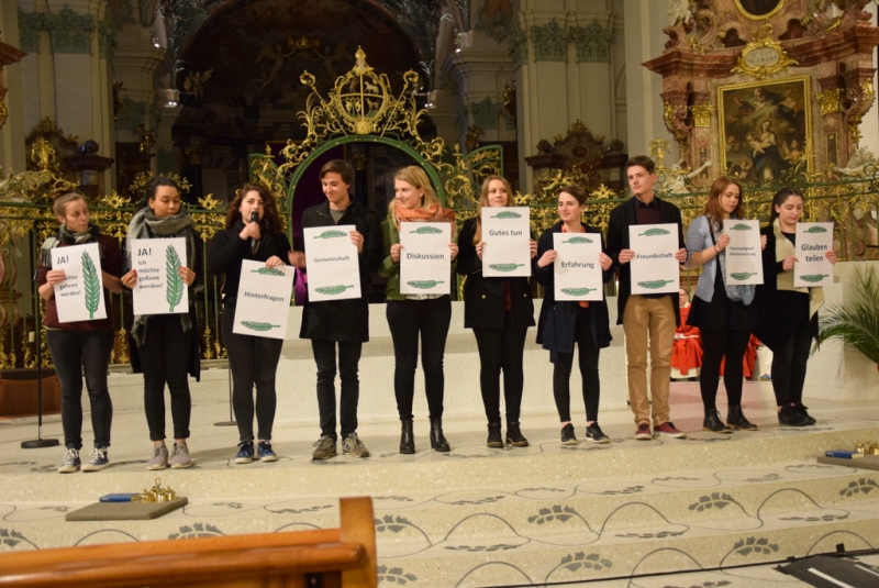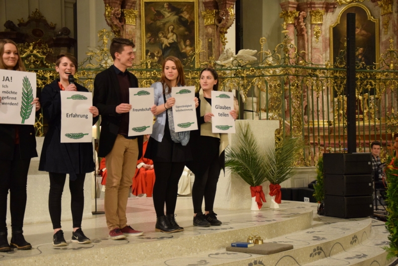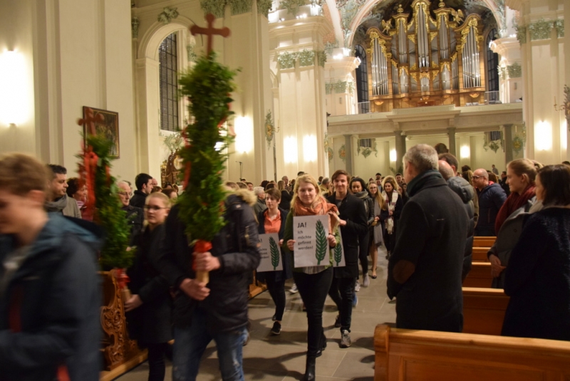 Im crosspoint-Gottesdienste vom Sonntagabend den 20. März 2015 wurde nicht nur Palmsonntag gefeiert, sondern die rund 35 Firmlinge von St.Gallen Zentrum sagten öffentlich JA zu ihrem Glauben und zur Kirche und äusserten so den Wunsch gefirmt zu werden. Jede Firmgruppe tat dies in unterschiedlicher Weise: Plakate, kurze Theaterszenen und sogar Ballone, die symbolisch in den Himmel der Kathedrale aufstiegen gehörten dazu. Musikalisch wurde der Gottesdienst von der crosspoint-Band mitgestaltet.