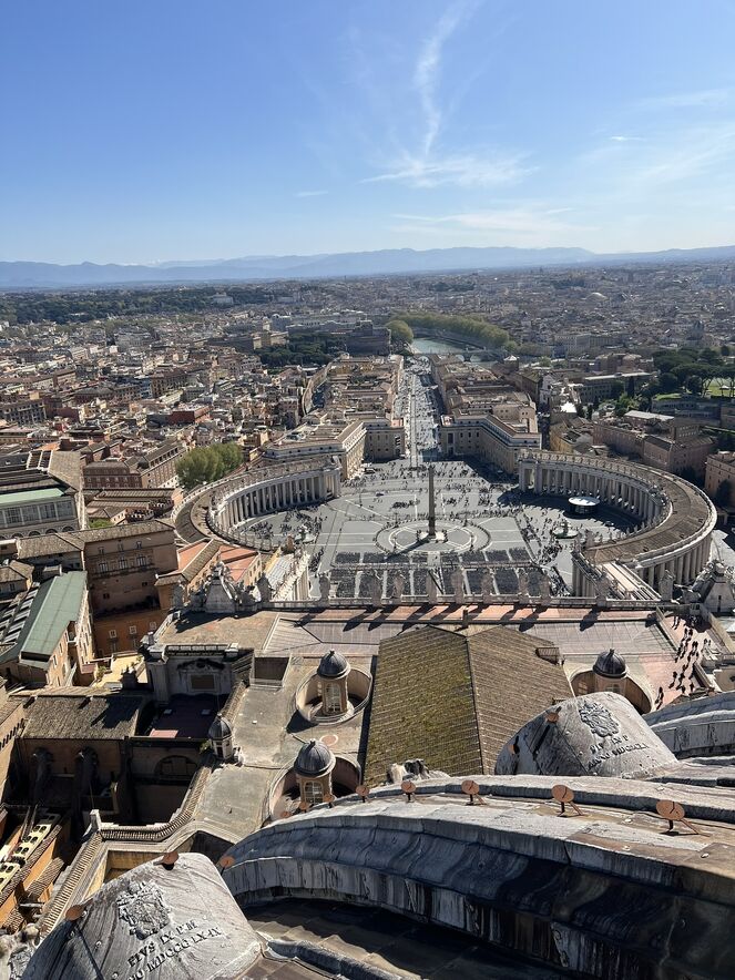 Der zweite Tag in Rom begann früh. Um 08.00 Uhr startete unser Pilgerzug über die Via della Conciliazione durch die heilige Pforte des Petersdoms in dessen inneres. Nach einem kurzen individuellen Rundgang durch den Petersdom machten wir uns auf in die Schlange für die Kuppel. Das anstehen hat sich gelohnt, die Gänge, Treppen und Nischen der Kuppel wurden erforscht und bestaunt. Nach einer längeren Mittagspause besuchten wir am Nachmittag die Schweizer Garde.