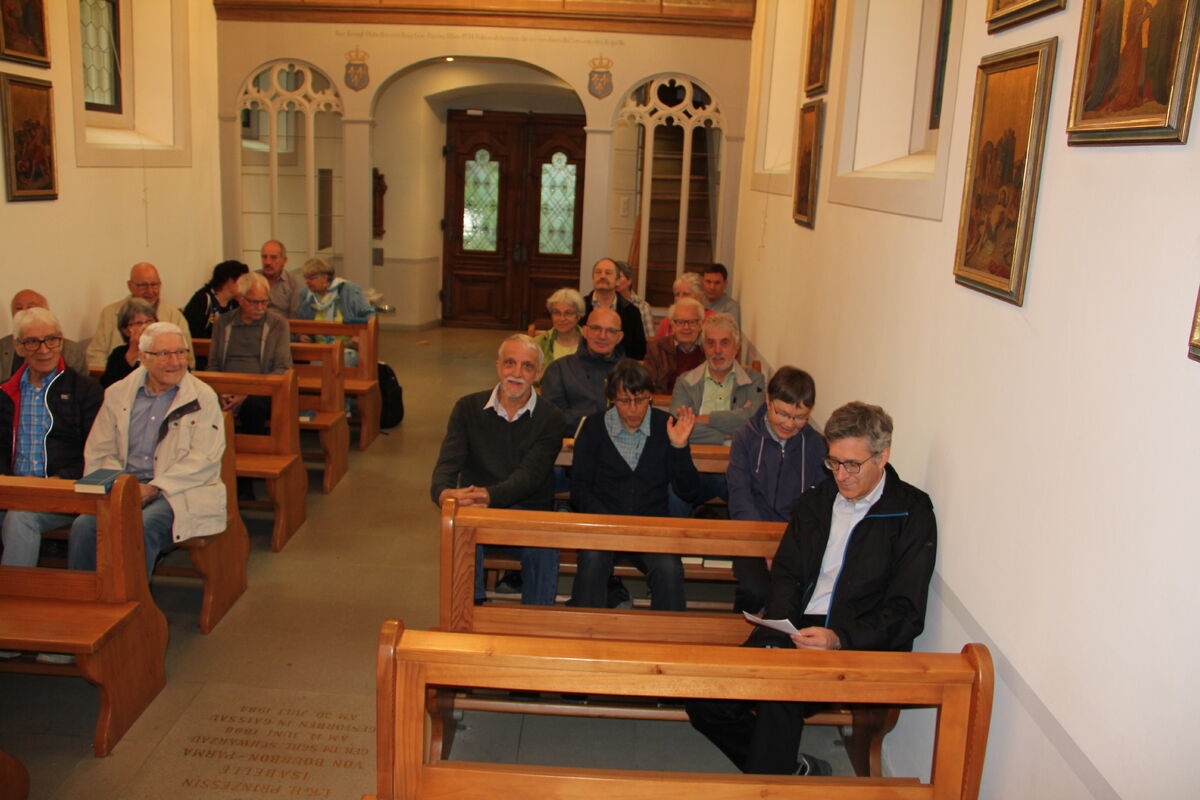 Eine bunte Schar begab sich zum Maibummel und zur Maiandacht in die Schlosskapelle Wilen-Wartegg. Der leichte Regen konnte die gute Laune nicht trüben. Nach der besinnlichen Maiandacht mit Marjan Paloka in der Schlosskapelle konnten wir Kaffee und Gipfeli geniessen.