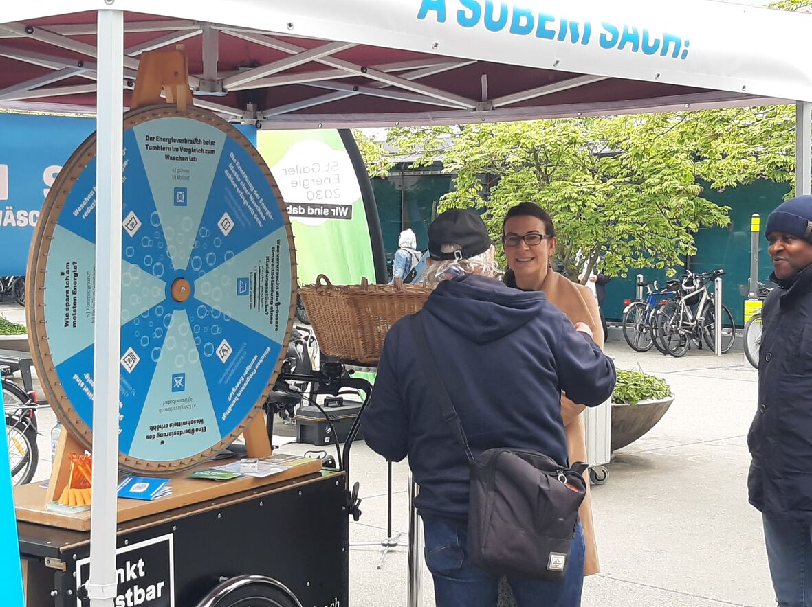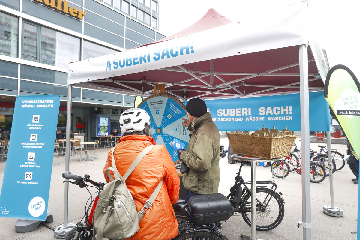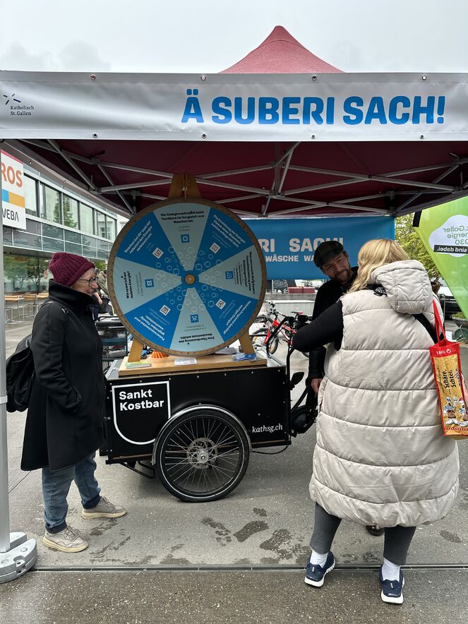 Dieses Jahr hat die Cityseelsorge erstmals an den Green Days mit einer Standaktion teilgenommen. Passend zum Motto der Green Days vermittelten wir praktische Tipps, wie sich beim Wäsche Waschen viel Energie sparen lässt, und dies bei gleichbleibender Wäscheleistung! Beim Glücksrad konnten die Besuchenden ihr Wissen testen und im Gespräch vertiefen. Spontan hat sich die mobile Velowaschanlage von Markus Koller aus Gossau dazugesellt. Für einen Tag stand der Vadianplatz somit ganz im Zeichen der energiesparenden Hygiene von Mensch und Zweirad.