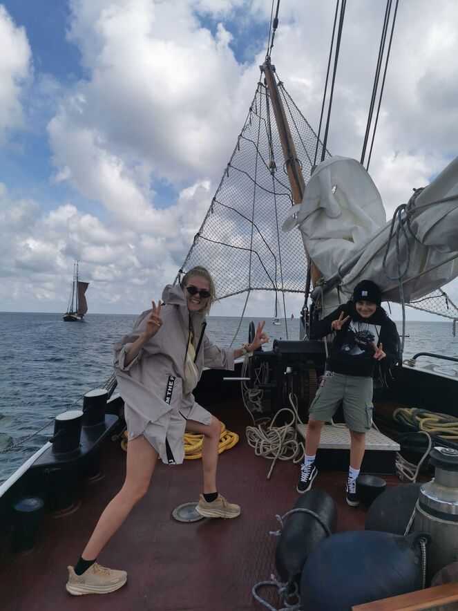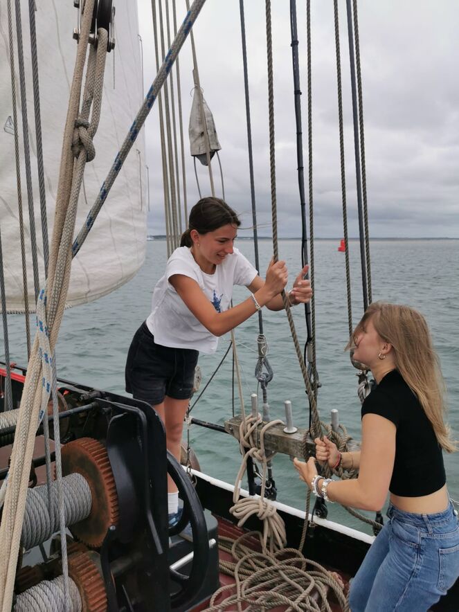 Zu Beginn der Woche sprachen wir mit Matrose und Skipper darüber, was den Jugendlichen wichtig war, was sie gerne erleben oder sehen würden. Ein Highlight war das sogenannte „Trockenlegen“, bei dem das Schiff bei Ebbe auf dem Meeresboden zum Liegen kommt. Diese Aktion wurde demokratisch entschieden und mit nur einer Stimme Vorsprung angenommen. Zum Glück! Denn für viele war dies der beste Tag der Woche. Wir konnten mitten auf dem Meer übernachten, weit weg von jedem Hafen. Das bedeutete: keine Nachbarn, keine Ruhezeiten und so viel Gelächter und Musik, wie wir wollten. Einige Jugendliche übernachteten sogar auf Deck und wurden mit einem atemberaubenden Sonnenaufgang belohnt.