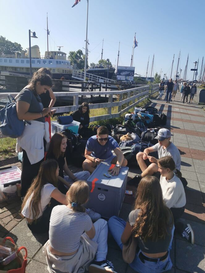 Nach einigen Stunden Fahrt stieg die Jugendgruppe samt Leitungsteam beim Hafen in Enkhuizen aus. Dort verabschiedeten wir uns vom zweiten Segelboot, das von einem anderen Hafen aus starten sollte.