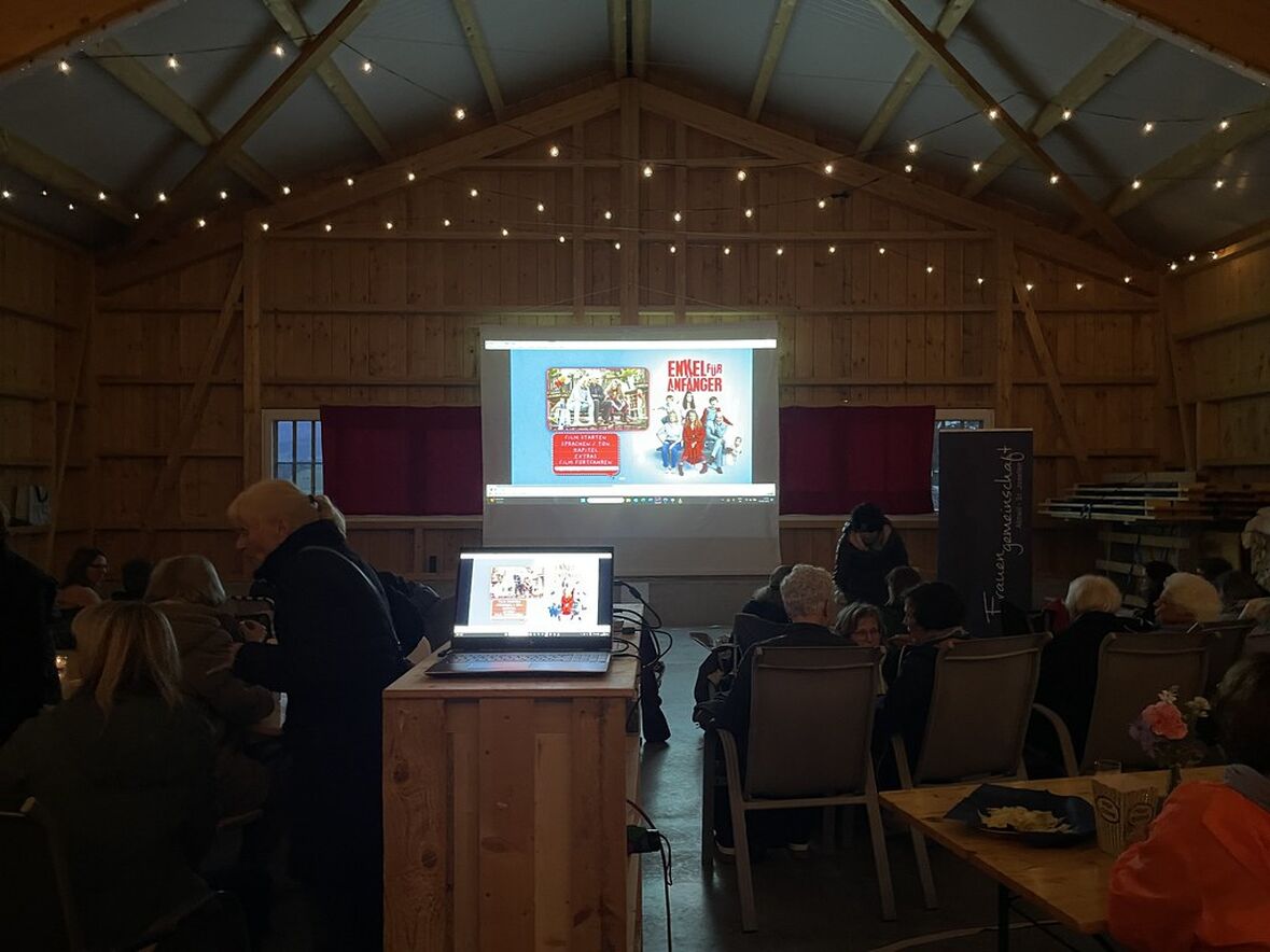 Kinoabend in der Remise Hafnersberg. Apéro, gebratene Marshmallows, Popcorn, Pausenglacé, viel Gelächter und gute Laune. Zudem eine absolut idyllische Location!. Dies alles hat dazu beigetragen, dass der Kinoabend mit dem Film "Enkel für Anfänger" mit über 40 Teilnehmerinnen in einer Remise oberhalb von Abtwil ein voller Erfolg war.