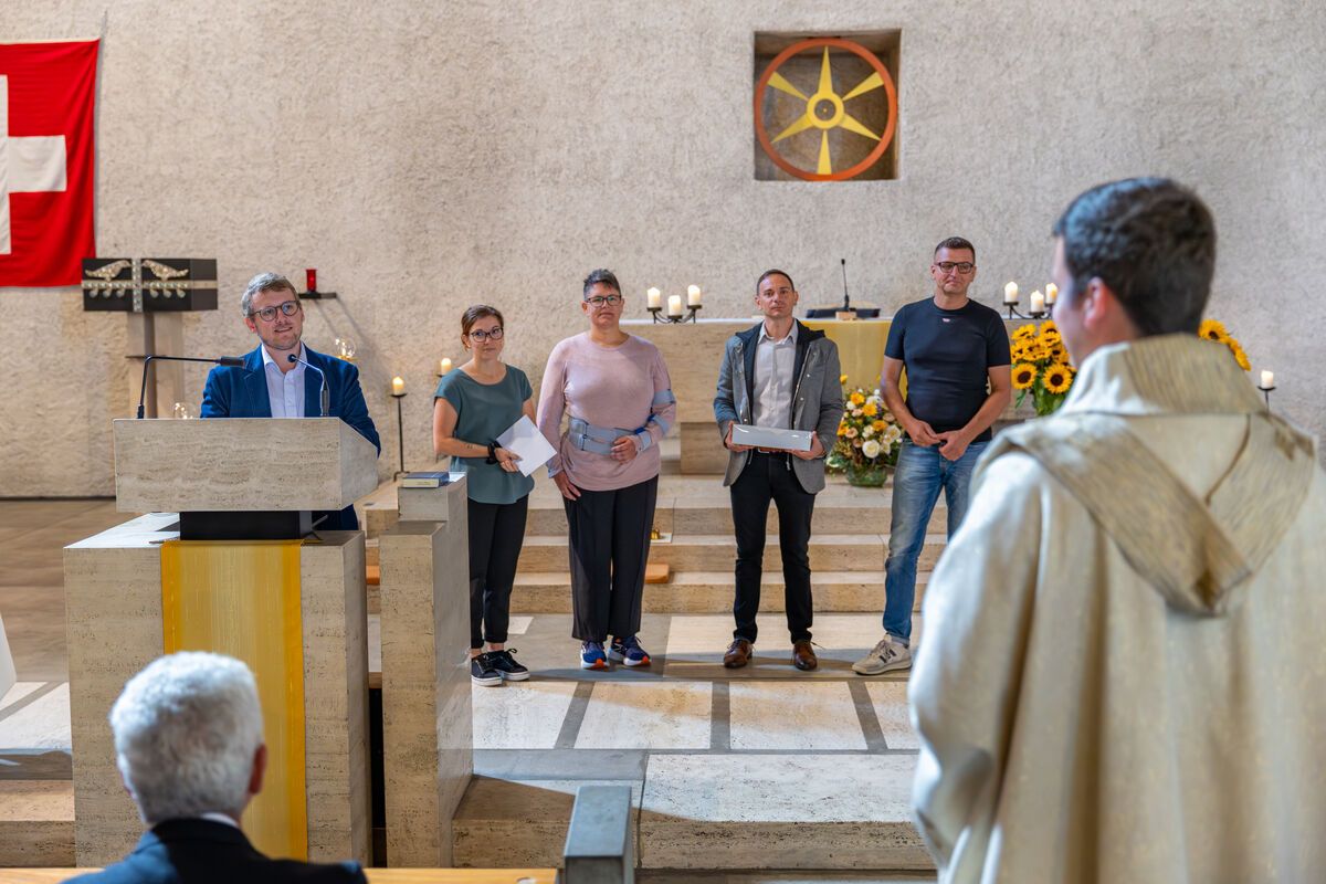 Vor dem feierlichen Schlusssegen sprachen Vertreterinnen und Vertreter aus Pfarrei, Teams und Behörden ihren Dank aus. Mit bewegenden Worten bedankte sich auch Kaplan Šarić selbst bei allen für die wertvolle Weggemeinschaft.