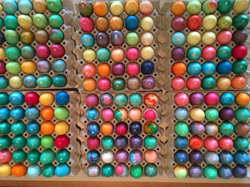 Jedes Jahr färben die Ministranten von Wittenbach die Ostereier, die dann nach der Osternachtsfeier zum Eiertütschen verteilt werden
