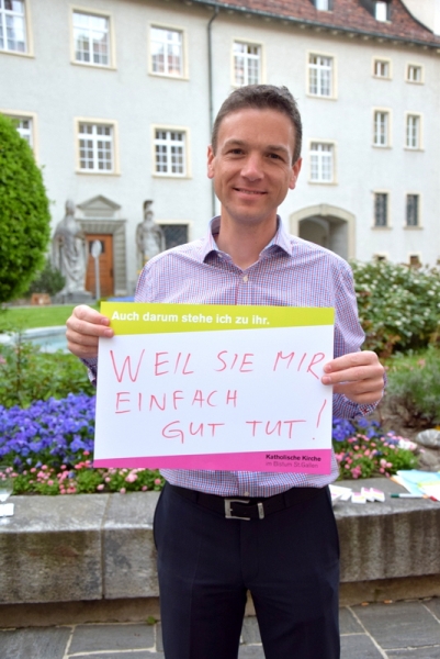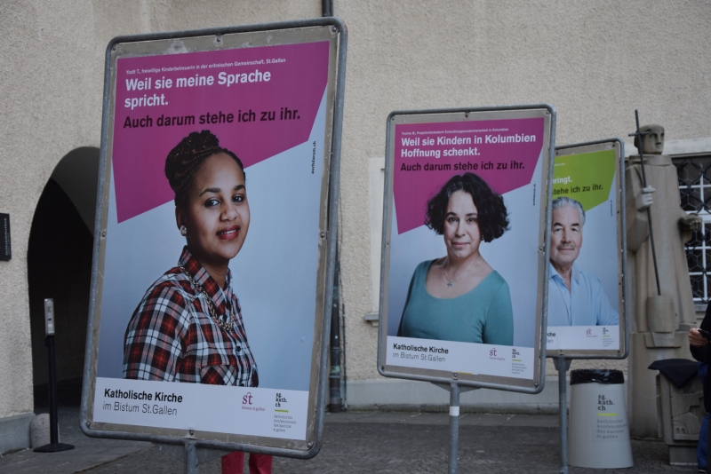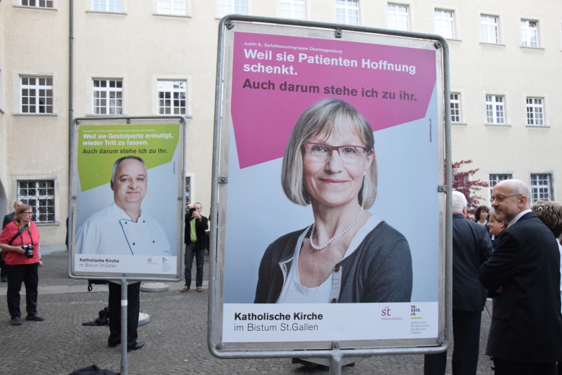 Am 09. Mai 2016 wurde die Informations- und Imagekampagne Katholische Kirche im Bistum St. Gallen mit einer Vernissage eröffnet. Im Klosterhof trafen sich die 16 beteiligten „Models“ mit Angehörigen, Gästen und Medienleuten. Am 17. Mai 2016 startet das Bistum und Konfessionsteil, der Verein kath. Kirchgemeinden Appenzell Innerrhoden und der Verband röm.-kath. Kirchgemeinden Appenzell Ausserrhoden die gemeinsame Image- und Informationskampagne. Das Motto lautet: «Auch darum stehe ich zu ihr – Katholische Kirche im Bistum St. Gallen». Ziel der Kampagne ist es, die vielen verschiedenen Tätigkeiten der Kirche ins Gedächtnis zu rufen und die engagierten Mitglieder und Seelsorgenden in ihrem Einsatz zu stärken.