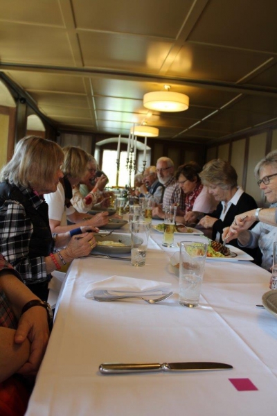 Zum diesjährigen Ausflug haben sich 16 Seniorinnen und Senioren angemeldet. Die Reise ging nach Altstätten im Rheintal. Auf dem Programm stand zunächst eine Betriebsführung in der Kerzenfabrik Hongler. Rita Krucker informierte die Teilnehmenden über die verschiedenen Produktionsprozesse in der Kerzenherstellung. Nach einem sehr feinen Mittagessen im traditionsreichen Restaurant Frauenhof wurde die Ausflugsgruppe für eine Stadtführung durch Altstätten von Stadtführer Meinrad Gschwend abgeholt. Auf kurzweilige Art und Weise erklärte Meinrad Gschwend verschiedene Sehenswürdigkeiten und geschichtliche Anekdoten zu Altstätten. Die Rückreise führte uns im offenen Bahnwagen nach Gais und dann weiter nach St. Gallen.