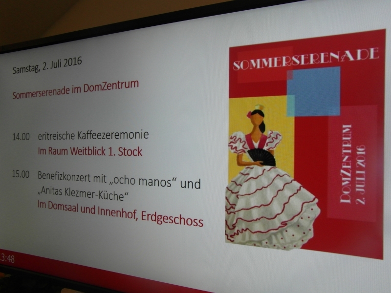 Die erste Sommerserenade im DomZentrum ist bereits wieder Vergangenheit. In Erinnerung bleibt ein gelungenes Fest mit einer vielfältigen Mischung verschiedener Elemente, die sich zu einem wunderbaren Sommerstrauss zusammenfügen. Und in Erinnerung bleiben die vielen fröhlichen und heiteren Menschen.