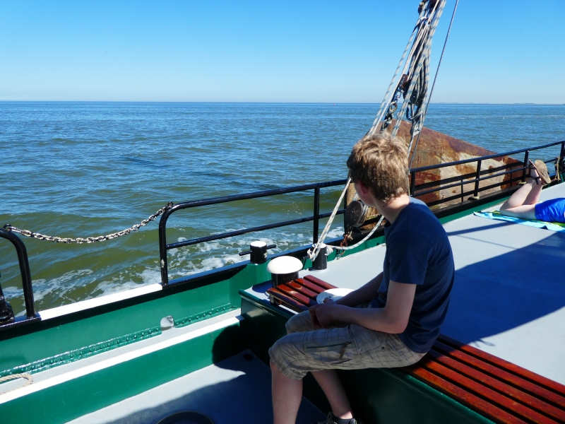 Heute liefen wir auf eine Sandbank auf und warteten bis die Ebbe kam. Dann konnten wir auf dem Meeresgrund herumlaufen.