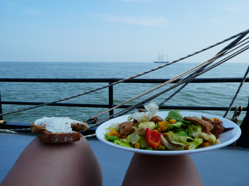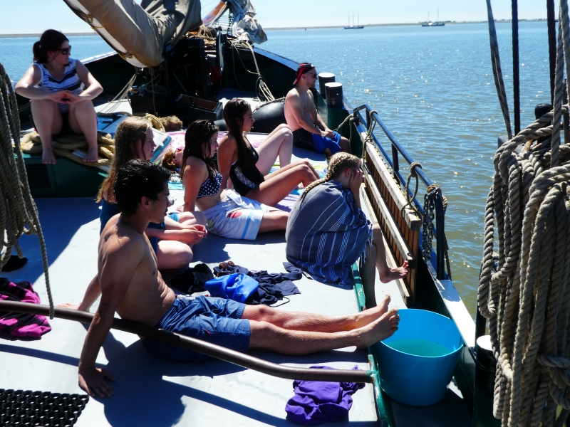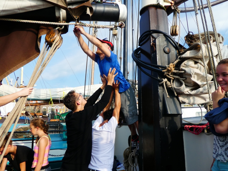 Heute war ein guter Tag, um eine wunderschöne Woche abzuschliessen. Dieser, wie jeder andere Tag dieser Woche war erfolgreich, aufregend, schön und vor allem lustig. Zum Abschluss haben wir das Deck geschrubbt und das Schiff geputzt. Mit 20 Leuten sind wir sehr schnell vorangekommen. Im Hafen angekommen haben wir uns bei unserem Skipper Roman und Matrose Deetlef für diese tolle Woche bedankt.