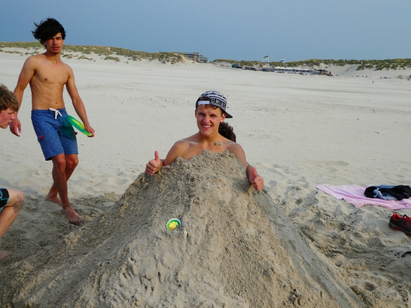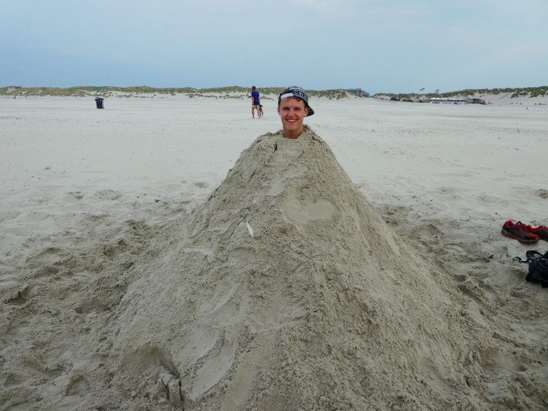 Der Leander bis zum Kopf im Sand am wunderschönen Nordseestrand