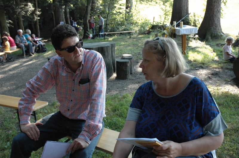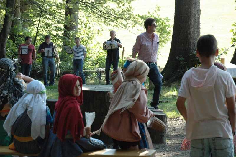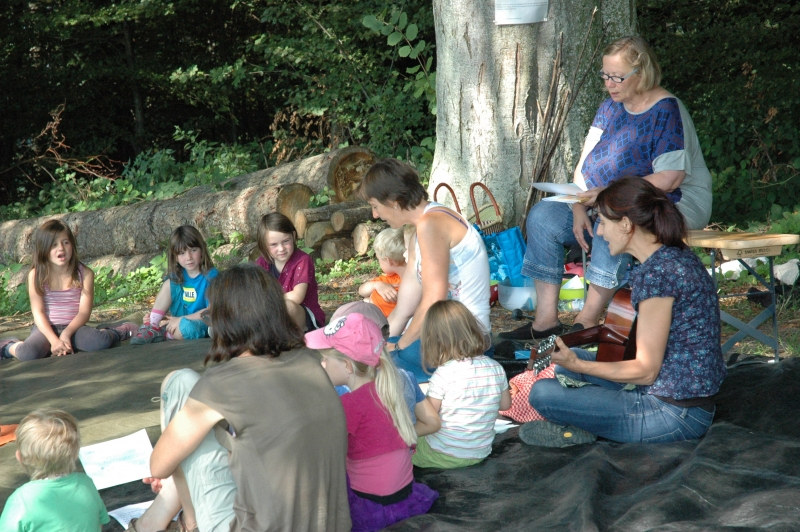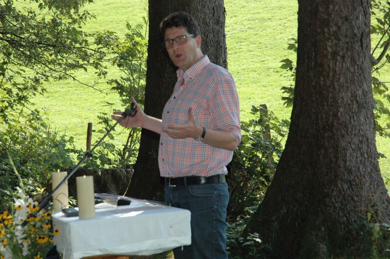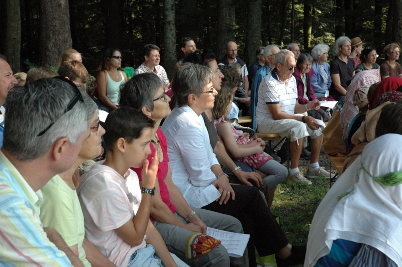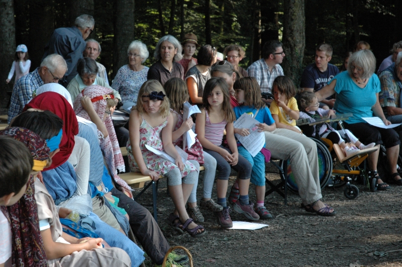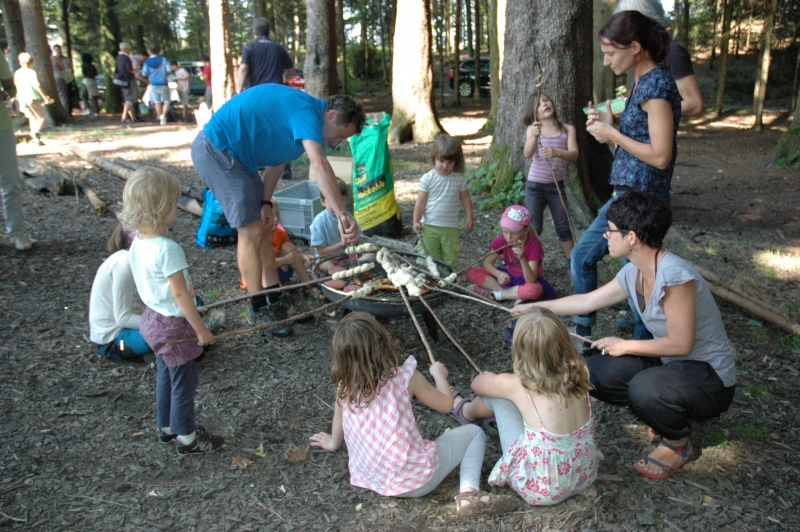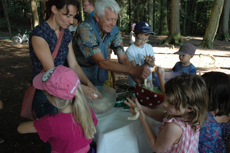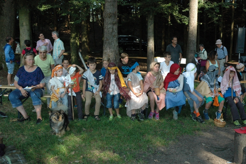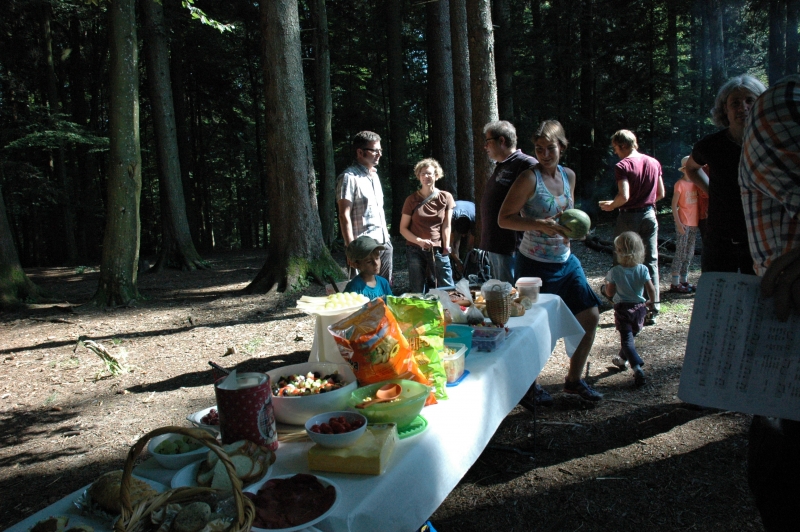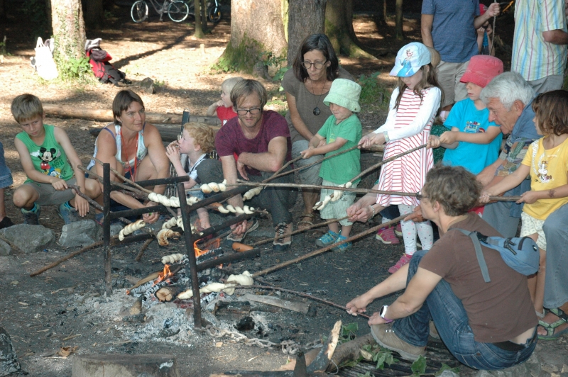 Bei schönstem Sommerwetter fand in diesem jahr der ökumenische Gottesdienst auf dem Ringelberg statt. Viele (Gross-) Familien wanderten in bester Laune den Berg hinan um dort miteinander zu feiern. Nach einem gemeinsamen Anfang, bei dem die Geschichte der wunderbaren Brotvermehrung von den Schülerinnen und Schülern pantomimisch dargestellt wurde, trennten sich die Kleinen zu einer eigenen Kinderfiir, bei der sie u.a. Brotteig herstellten, der bei der anschliessenden Teilete über dem Feuer für Stockbrot diente. Das Buffet war gut bestückt und auch die Spiele luden die Teilnehmerinnen und Teilnehmer ein, noch lange über den Gottesdienst hinaus im Wald zu verweilen.