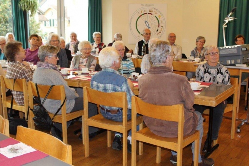Erich Kästner: Lasst euch die Kindheit nicht austreiben war der Titel des Referats von Pfarrerin Andrea Weinhold. Mit Texten, Bildern und einem Hörausschnitt aus der Geschichte Das fliegende Klassenzimmer wurden das Leben und Schaffen von Erich Kästner vorgestellt. Zu diesem Vortrag im Saal der Evangelischen Kirche Bruggen erschienen 22 Frauen und 5 Männer. Die kurzweilige Präsentation erntete von den 27 anwesenden Seniorinnen und Senioren einen spontanen und herzlichen Applaus. Anschliessend wurde ein feiner z’Vieri serviert.