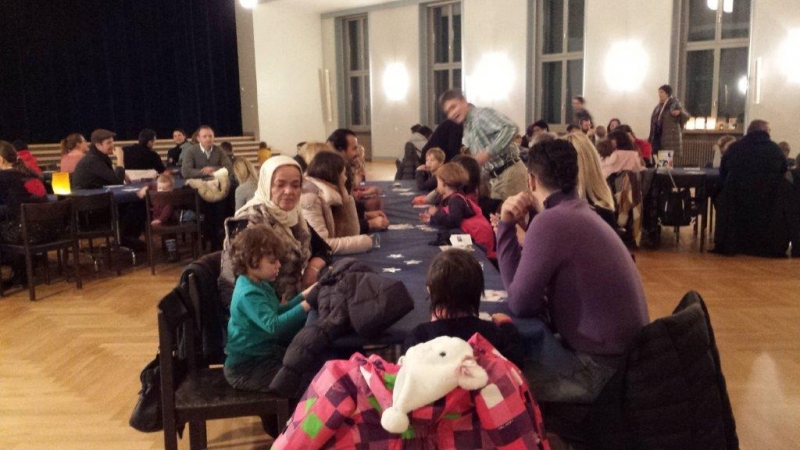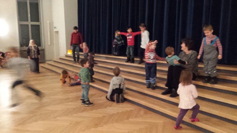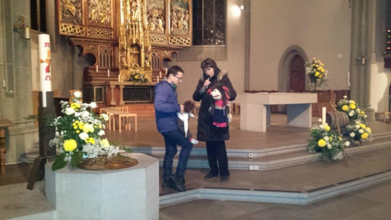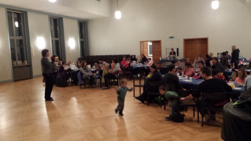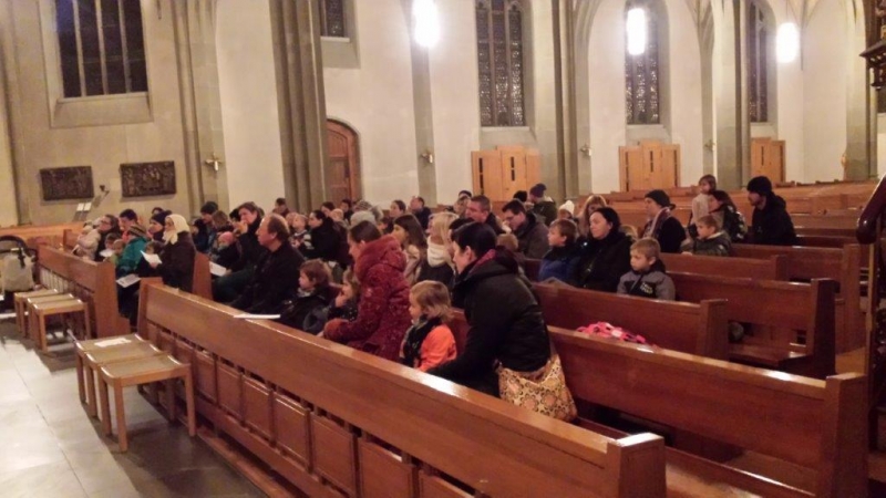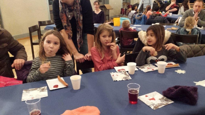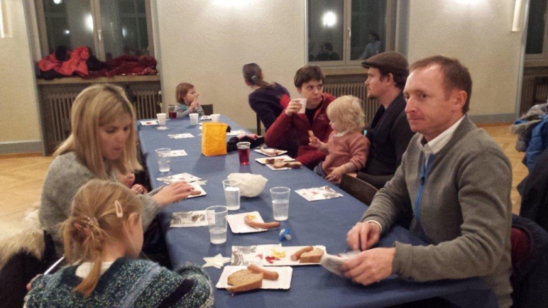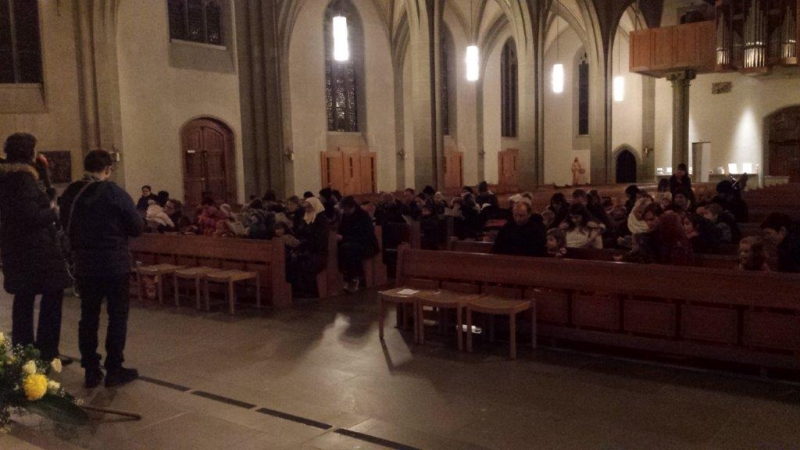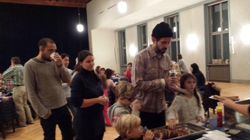 Laterne, Laterne, Sonne Mond und Sterne... so klange es auf der Kreuzbleiche, nachdem die Kinder und ihre Eltern in der katholischen Kirche St. Otmar der Geschichte von Sterntaler gelauscht haben. Sie zogen mit ihren unterschiedlichen Laternen via Kreuzbleiche zum evangelischen Kirchgemeindehaus Lachen. Dort angekommen wurden Gemeinsamkeiten von der Martinslegende und der Sterntaler-Geschichte aufgezeigt und das Ende der Geschichte erzählt. Leuchtende Sterne waren im Saal verteilt und durften von den Kindern aufgelesen werden. Einen Stern durften sie behalten, den anderen irgendjemandem weiterschenken. Reich beschenkt assen und tranken die Anwesenden Wienerli, Brot und Punsch.