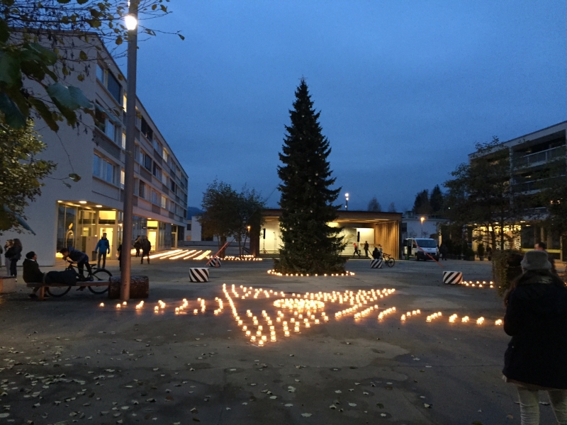 Caritas Aktion "Eine Million Sterne" auf dem Wittenbacher Zentrumsplatz, kombiniert mit dem Adventslieder-Singen der politischen Gemeinde.