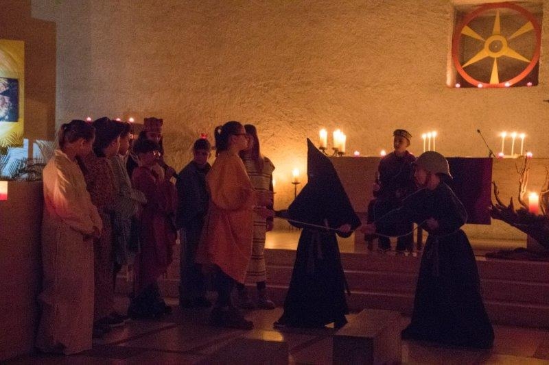 Einen gehaltvollen Gottesdienst mit einem Anspiel zur Hl. Luzia gestalteten die Schüler der 5. Klasse Kreuzbühl mit ihrem Lehrer, Herrn Pius Jud in der stimmungsvollen Atmosphäre der mit Kerzenlicht erleuchteten Bruder Klaus Kirche in Winkeln. Anschliessend waren alle zum gemeinsamen Z'Morge eingeladen.
