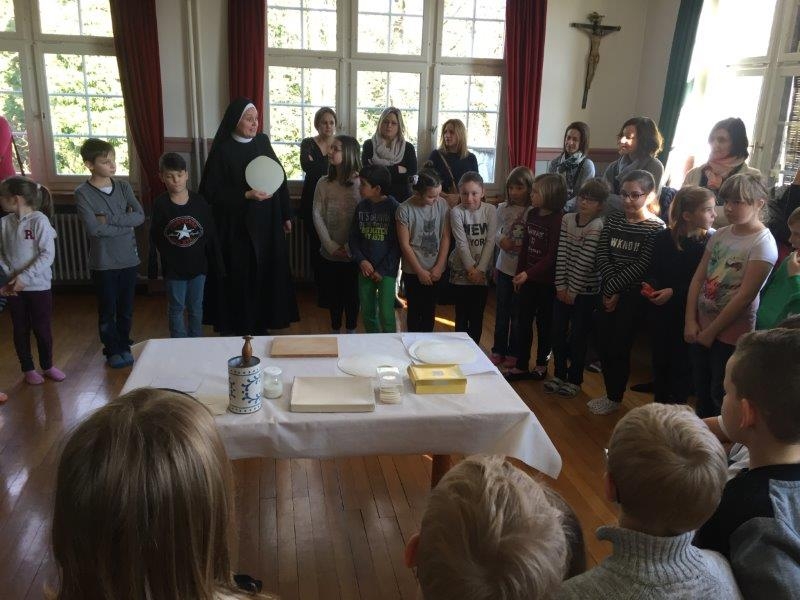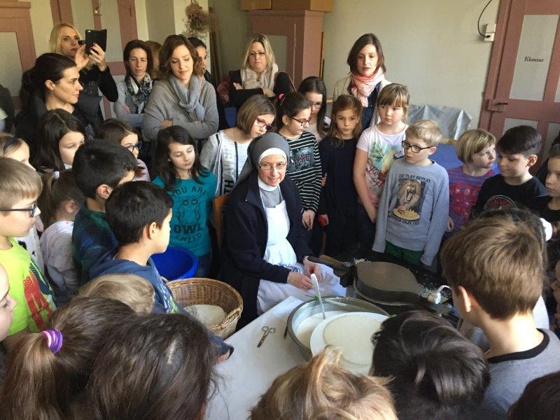 Im Zuge ihrer Erstkommunionvorbereitung besuchten die diesjährigen Winkler 3. Klässler das Kloster Glattburg und liessen sich -gemeinsam mit Erstkommunionkindern aus Henau und Niederglatt- von Sr. Scholastica und Sr. Petra in die Geheimnisse des Hostienbackens einweihen - und hatte viel Spass dabei...