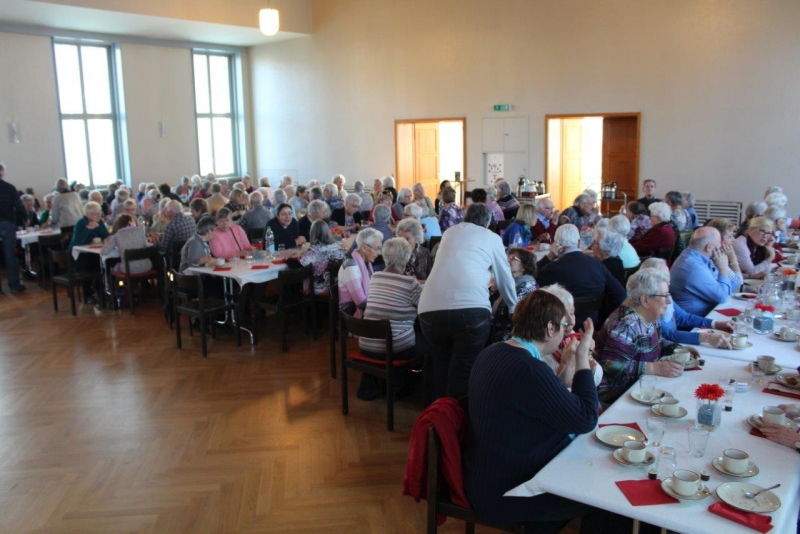 Auf dem Programm des heutigen Seniorennachmittags stand eine Aufführung des Senioren-Theaters St. Gallen. Das Lustspiel Blueme chömed nie ällei der Wanderbühne lockte 124 Seniorinnen und Senioren ins evang. Kirchgemeindehaus Lachen. Die einstündige Aufführung stiess beim Publikum auf grosse Begeisterung. Nach der Aufführung waren die Gäste sowie die Mitwirkenden des Laientheaters zu Kaffee und Kuchen eingeladen.