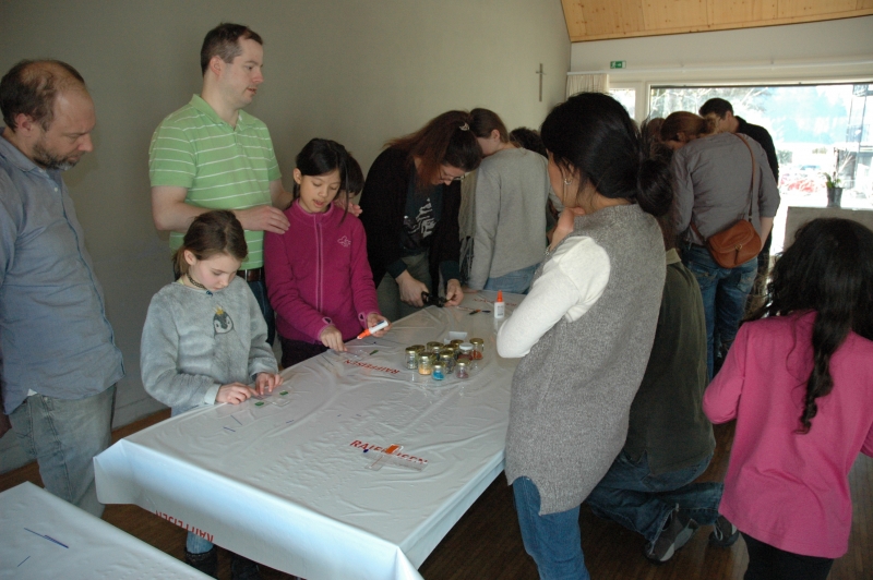 Zu einem intensiven Arbeitsnachmittag trafen sich die 20 ErstkommunikantInnen von St. Georgen mit ihren Eltern und katechetischen Begleiterinnen im Pfarreiheim. Nachdem sie sich mit dem Thema Weg auseinandergesetzt hatten, wurden die Andenken und Kreuze für die Erstkommunion gebastelt. Den Abschluss fand der Nachmittag mit der Taufgelübdeerneuerung in der Pfarrkirche.
