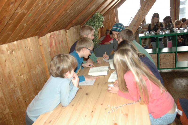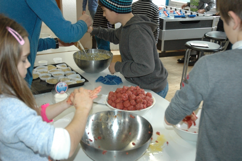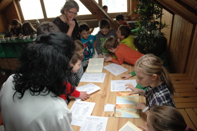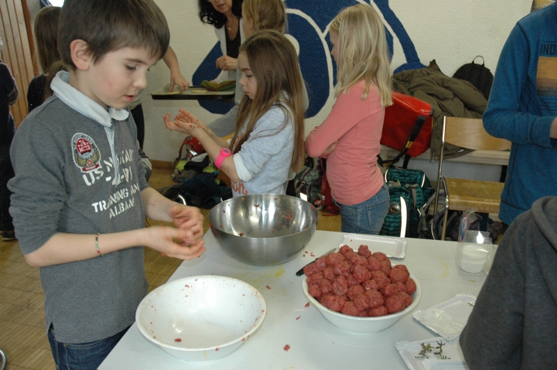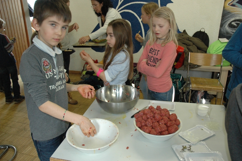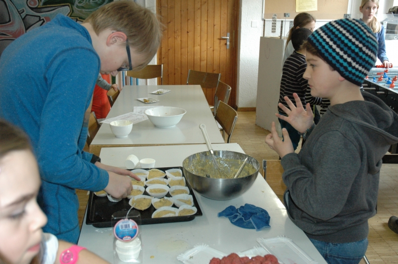 Die Pfarrei St. Georgen lud alle PrimarschülerInnen zum biblischen Kochen ein und es kamen 35 Kinder. Sie suchten die entsprechenden Textstellen in der Bibel, um die Zutaten für den Bibelkuchen zu erfahren, sie kneteten und schnippelten, was das Zeug hielt, um dann ihren Hunger mit den Ergebnissen zu stillen. Es war rundherum ein grosses Vergnügen.