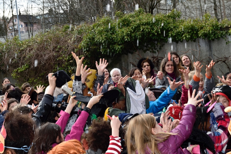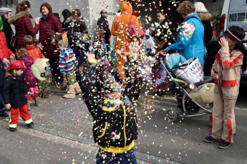 Bei schönem Frühlingswetter erwartete Baptistli die fröhliche Kinderschar vor der Dreifaltigkeitskirche.