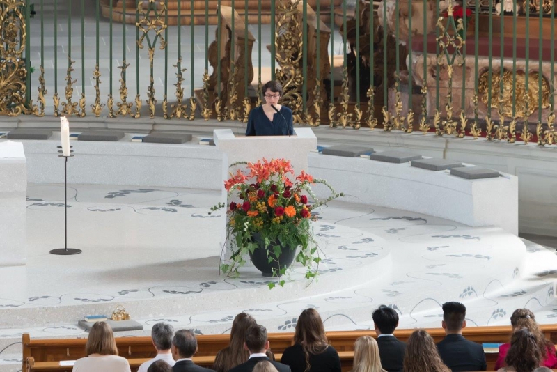 Seine Predigt baute der Bischof auf zwei Gegenständen auf. Der USB-Stick, den er den Mitfeiernden zeigte, sei Symbol für die Forschungs- und Denkleistung des Menschen. Hätte ihn vor 10 Jahren jemand gefragt, ob es möglich sei, all seine Computerdaten auf einem so kleinen Gegenstand zu speicher, hätte er nein gesagt. Der zweite Gegenstand war ein Sonnenblumenkern. Dieser war in der Kirche kaum zu sehen, da er so klein ist. Und doch sind darin noch viel mehr Informationen gespeichert als auf einem USB-Stick. Darin ist das Leben, das Wachstum und die Entwicklung einer herrlich schönen Blume angelegt. Der Sonnenblumenkern steht für das Leben, das auch in uns angelegt ist und in uns zur Entfaltung kommen will.