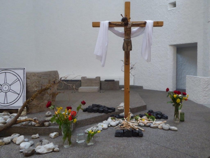 Für die Kreuzverehrung wurden viele Blumen mitgebracht.