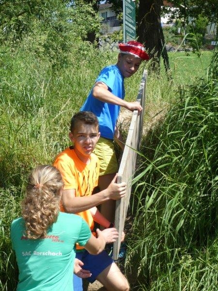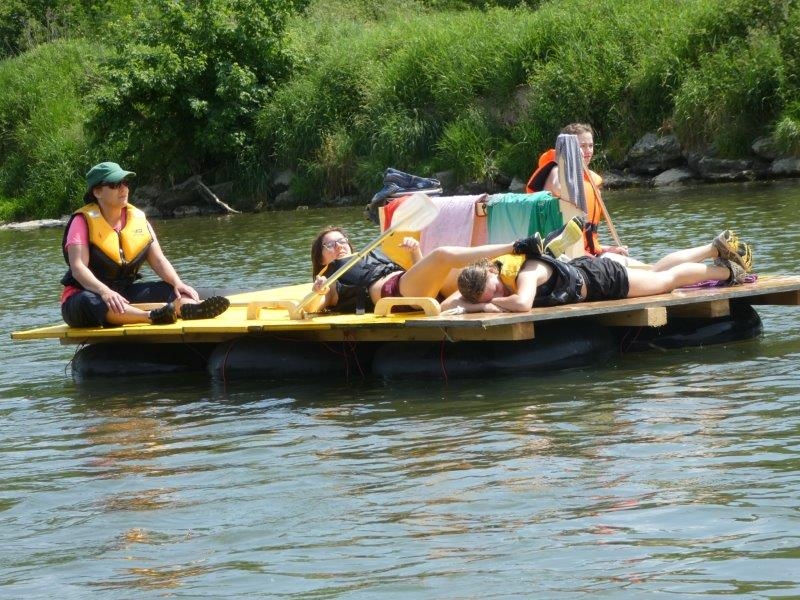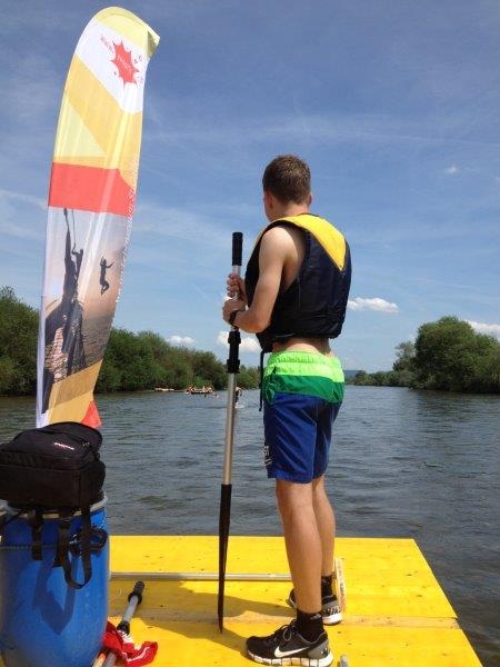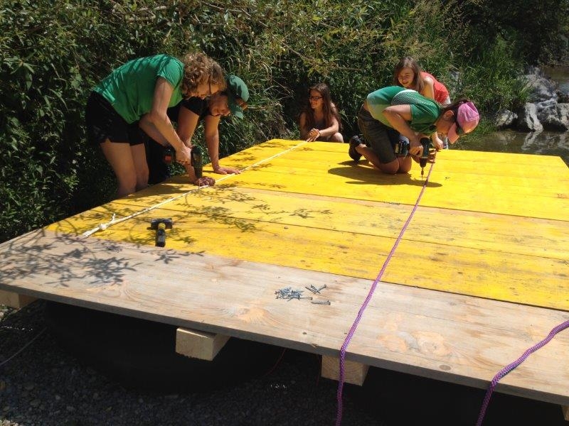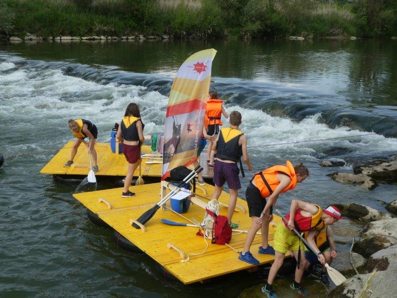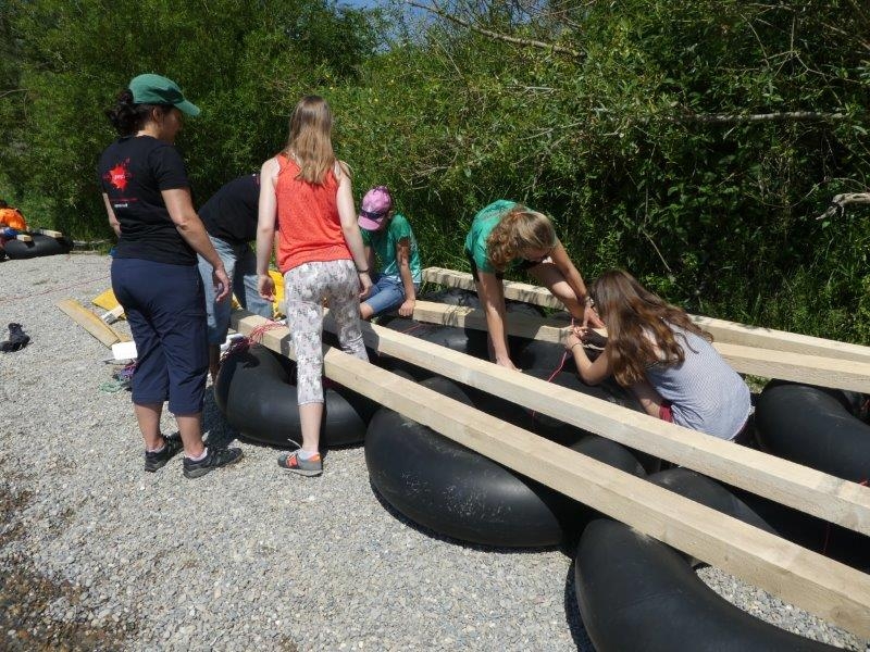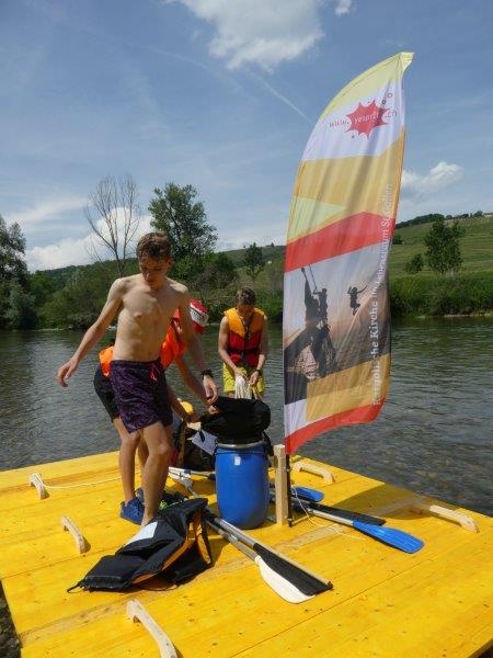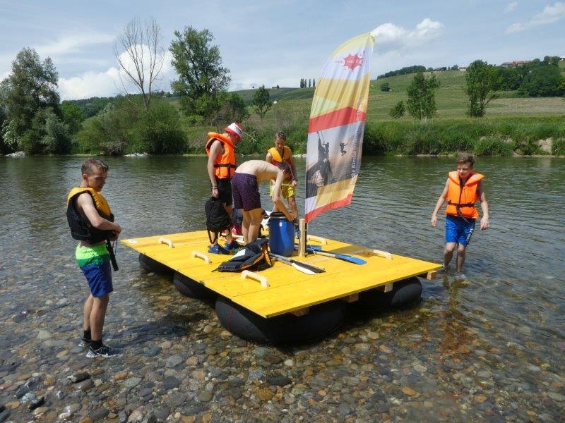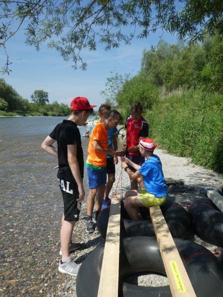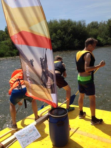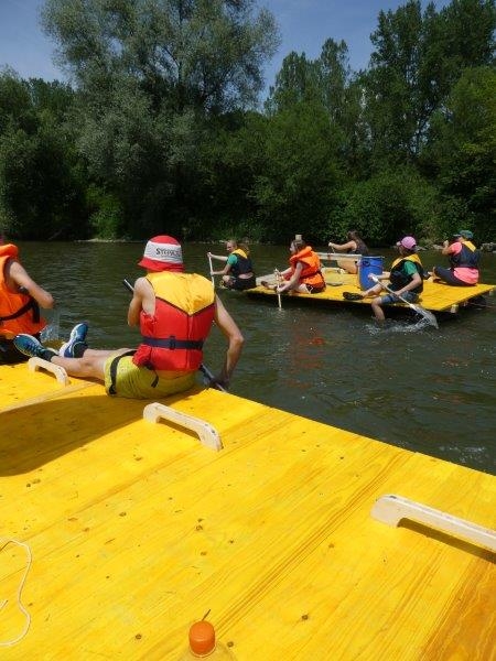 Dies war das Motto unseres Pfingstwochenendes. Zuest galt es, aus alten Lastwagenschläuchen, Balken und Brettern zwei grosse Flosse zusammen zu zimmern. Mit dem Segen der Seepolizei konnten wir dann nach dem Mittagessen endlich die Anker lichten. So verbrachten wir auf der Thur zwischen Frauenfeld und Andelfingen ein unvergessliches Abenteuer mit viel Sonnenschein.