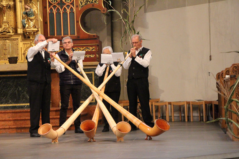 In der Kirche St.Otmar wurde ein Erntedankgottesdienst gefeiert, der musikalisch von den Gaiserwalder Alphornbläsern umrahmt war.