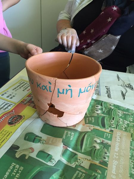 · die Scherben wieder zu einem Gesammten zusammensetzen
