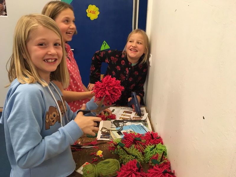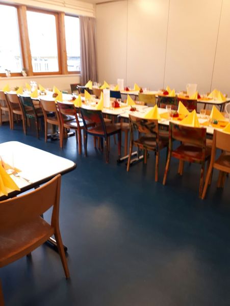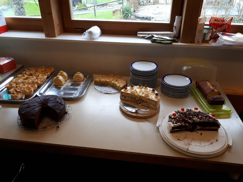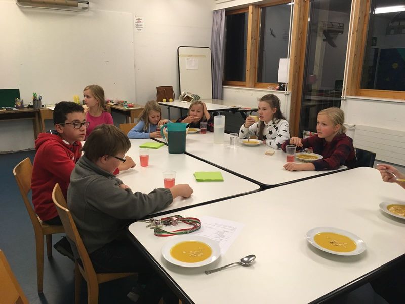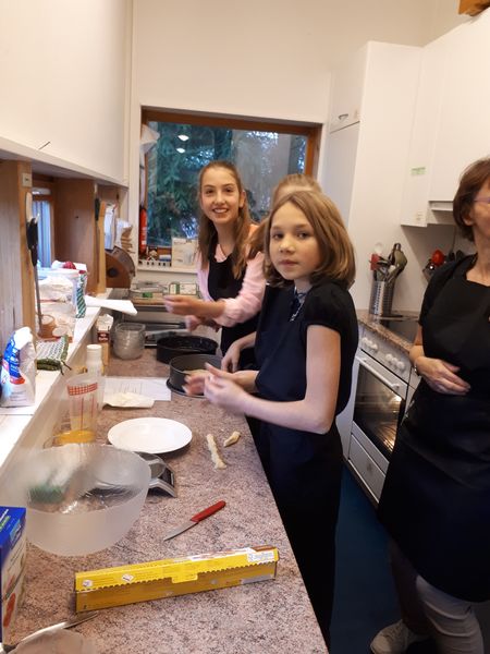 Am Vorbereitungsabend einigten sich die Kinder und Jugendlichen auf neun Torten- und Kuchenrezepte, die sie dann in der Cafeteria von Grund auf selber herstellten. Das Basteln der Tischdekoration gehört auch dazu, sowie die Stärkung mit einer feinen Suppe zwischendurch.