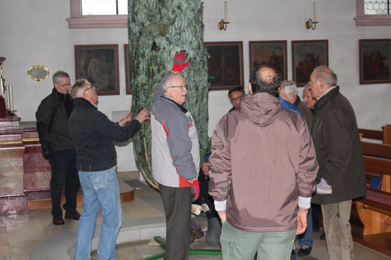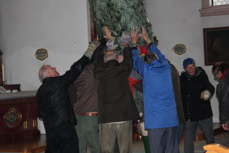 Die Vorbereitungen auf die Festtage laufen auf Hochtouren. Da braucht es nebst vielem anderem auch einiges an Manpower: In St.Fiden haben 11 Männer aus der Pfarrei den Weihnachtsbaum aufgerichtet.