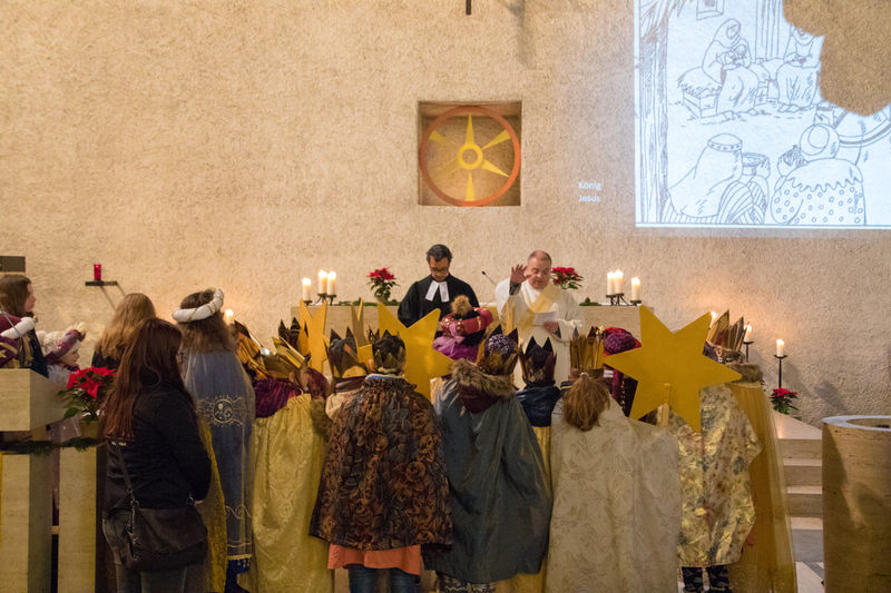Um 09:00 Uhr fand ein ökumenischer Gottesdienst statt. Dieser wurde mitunter von den diesjährigen Sternsinger aktiv mitgestaltet; die Sternsinger erzählten der gut vertretenen Kirchgemeinschaft die Weihnachts-Geschichte in ihren ganz eigenen Worten. Sie wurden zum Schluss des Gottesdienstes für Ihre Hausbesuche ausgerüstet, gesegnet und offiziell ausgesandt. Ein spezieller Dank an alle Sternsinger und Sternsinger-Begleitende für ihren Einsatz.