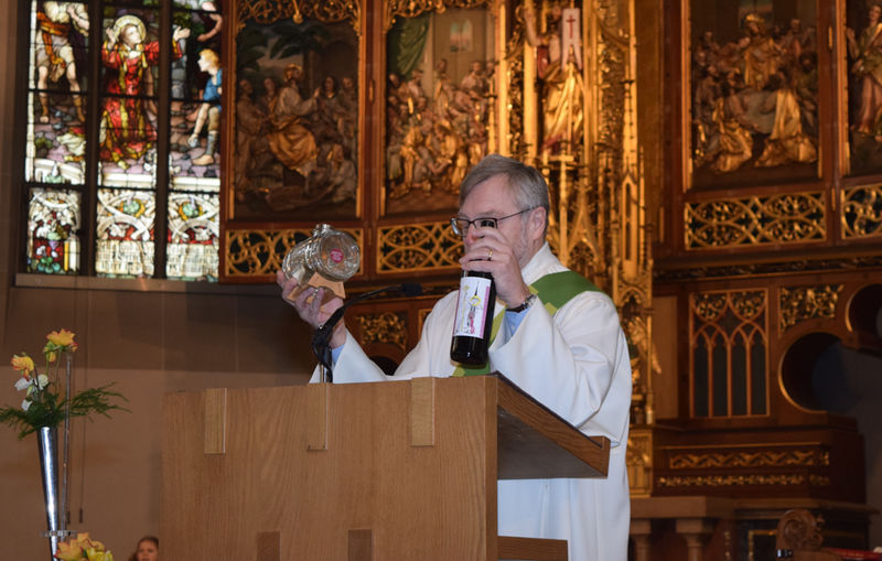 Mit einem Fässchen vom hl.St. Otmar, einer Flasche Otmarwein und einem Stadtführer begrüsste die Pfarrei St.Otmar den neuen Kaplan der Seelsorgeeinhei Zentrum, Joseph Antipasado. Beim anschliessendem Apéro wurden die ersten perönlichen Kontakte geknüpft.
