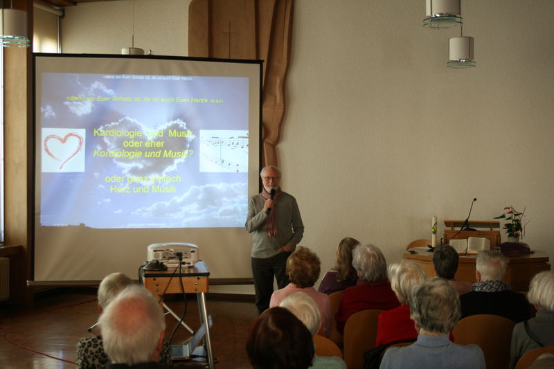Am Valentinstag drehte sich alles um das Herz – auch bei uns im Programm für SeniorInnen. Doch das Herz spielt jeden Tag, jede Sekunde unseres Lebens eine entscheidende Rolle, meist sehr regelmässig, aber manchmal auch stolpernd. Ohne das Herz kein Leben. Dr. Roman Sieber, Kardiologe und Musiker, Meinrad Leuch, Sänger, und Matthias Wenk führten an diesem herzvollen Nachmittag auf eine Reise durch das Zentrum des Lebens. Medizinische, anthropologische, spirituelle und musikalische Aspekte waren dabei wichtige Stationen.