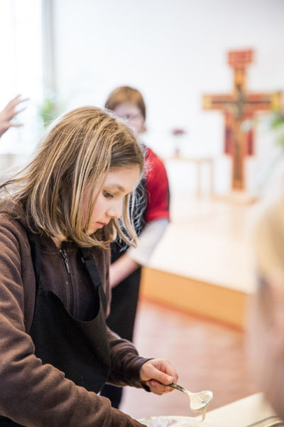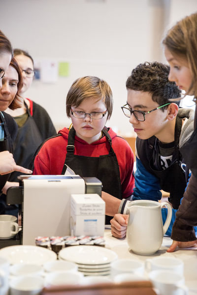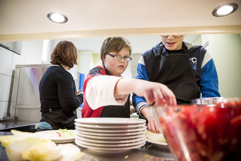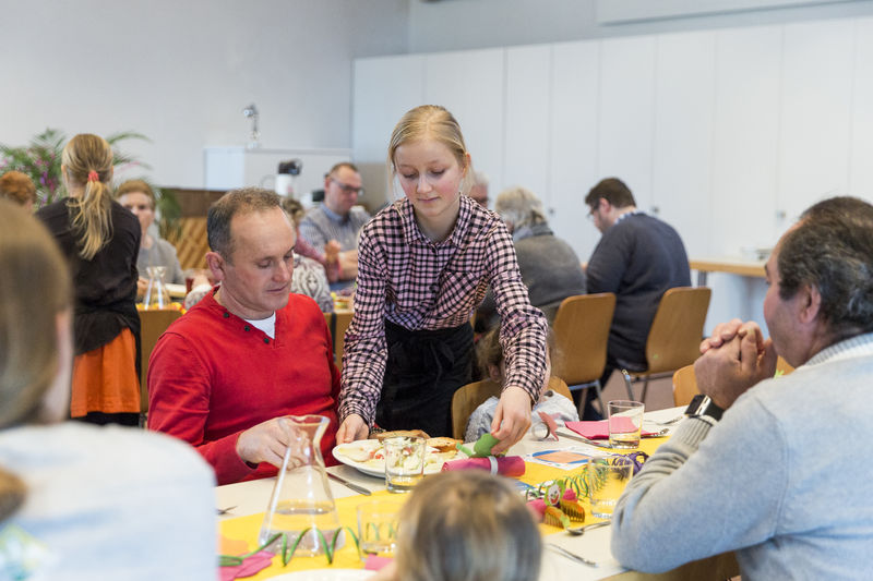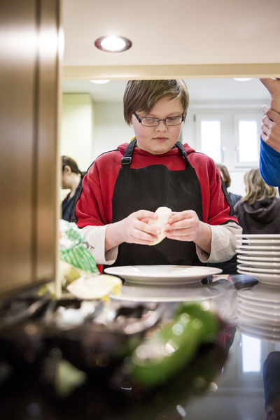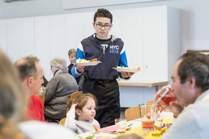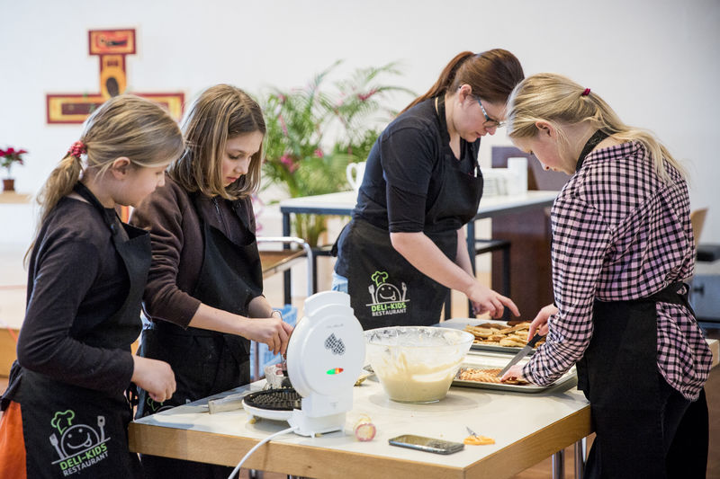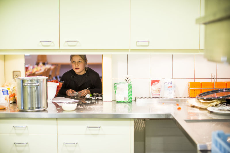 Dreimal im Jahr kochen die Deli Kids in St.Gallen West für rund 50 Gäste. Die Menüs planen sie selbst und lernen dabei, nachhaltig mit Lebensmitteln umzugehen.