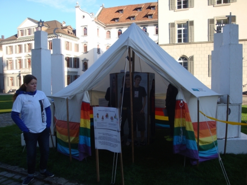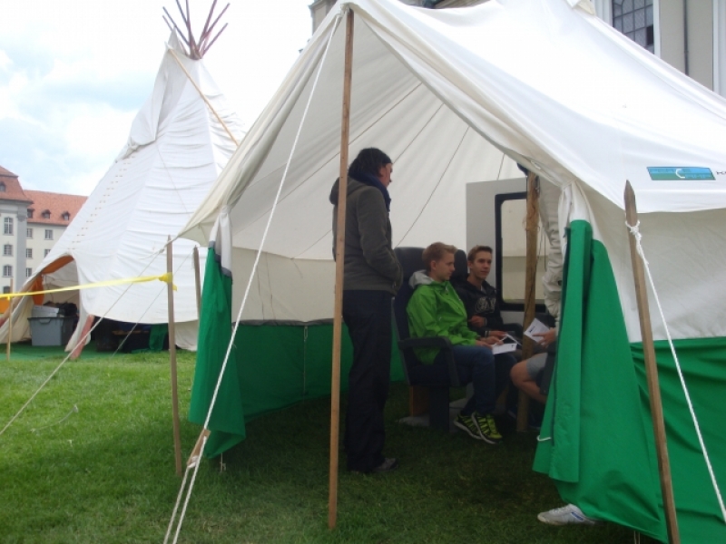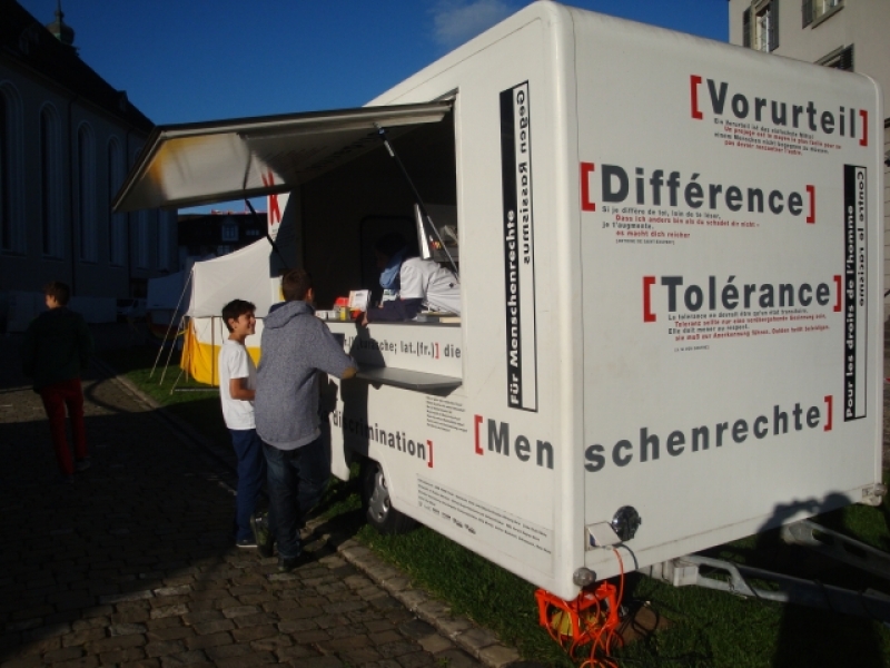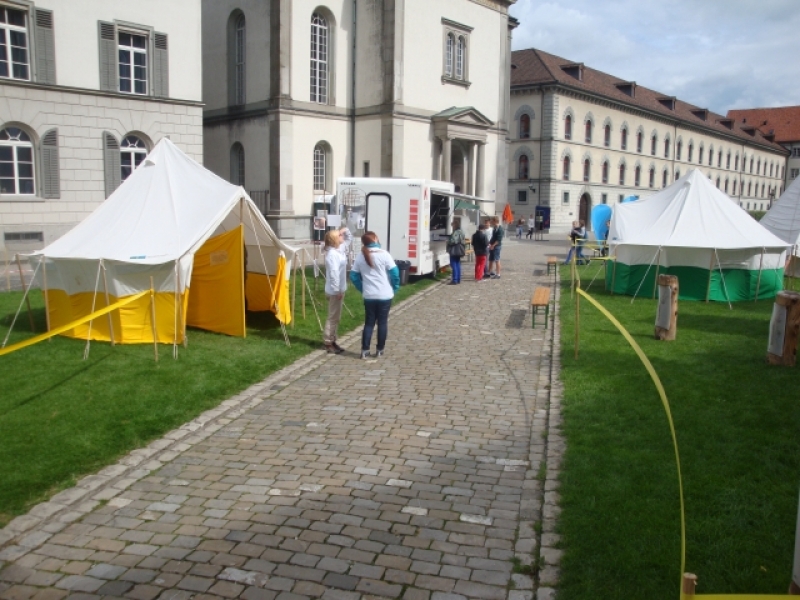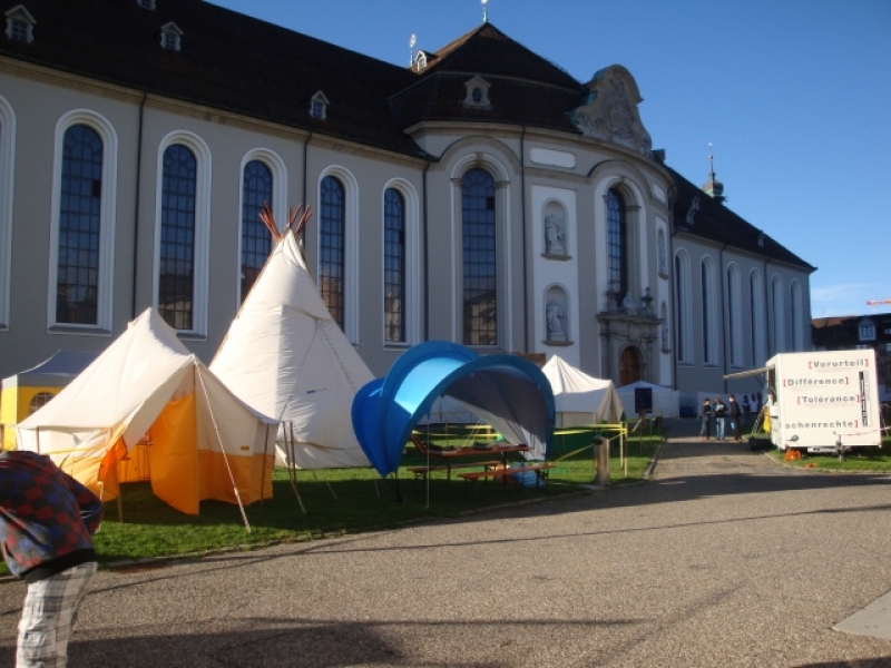 Das Respect Camp auf dem Klosterplatz ermöglichte es Jugendlichen zu verschiedensten Themen, wie Fremdheit, Vorurteile, Rassismus, Kommunikation, Interreligiösem Dialog - Fragen zu stellen und miteinander ins Gespräch zu kommen. Die Trainingspoints auf dem Klosterplatz wurden rege genutzt von Schulklassen, Jugendgruppen, Firm- und Konfklassen.