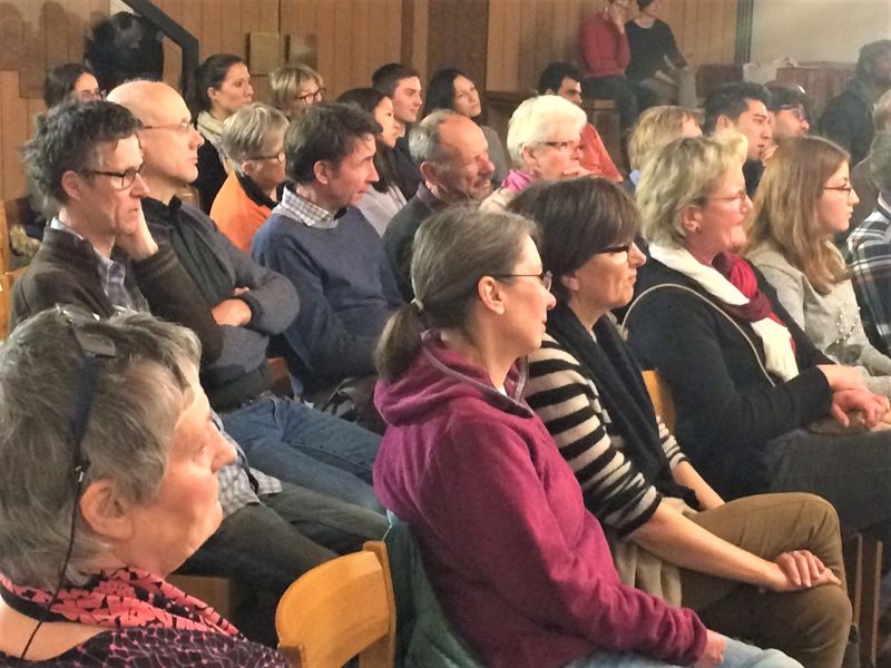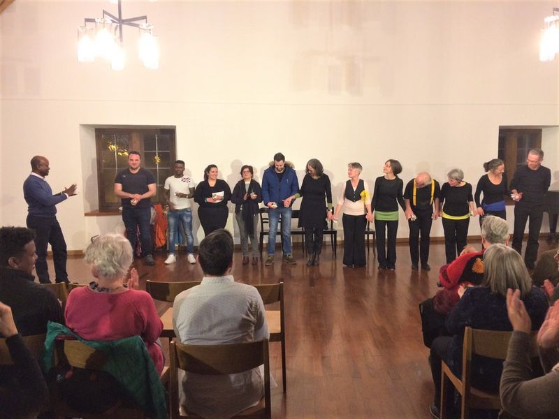 Beim Theaterabend «Liebe Andere» im Rahmen der Kantonalen Aktionswoche gegen Rassismus am Dienstag, 20.03.2018 im Waaghaussaal St. Gallen kamen Flüchtlinge aus acht Ländern und Einheimische aus nah und fern miteinander ins Gespräch. Gestaltet von der Theatergruppe «geh-dicht» unter der Leitung von Josephine Krumm aus dem Kanton Aargau drückten die Schauspieler und Schauspielerinnen aus, was Menschen aus dem Publikum erzählten: Erlebnisse aus dem Alltag, Eindrücke, Gedanken, die durch den Kopf gingen, Geschichten aus der alten und der neuen Heimat. Eindrückliche Szenen und Impressionen, die erst auf der Bühne gespielt – und anschliessend beim Apéro im Gespräch weiter vertieft wurden.