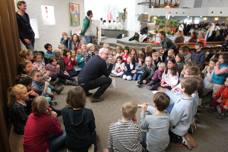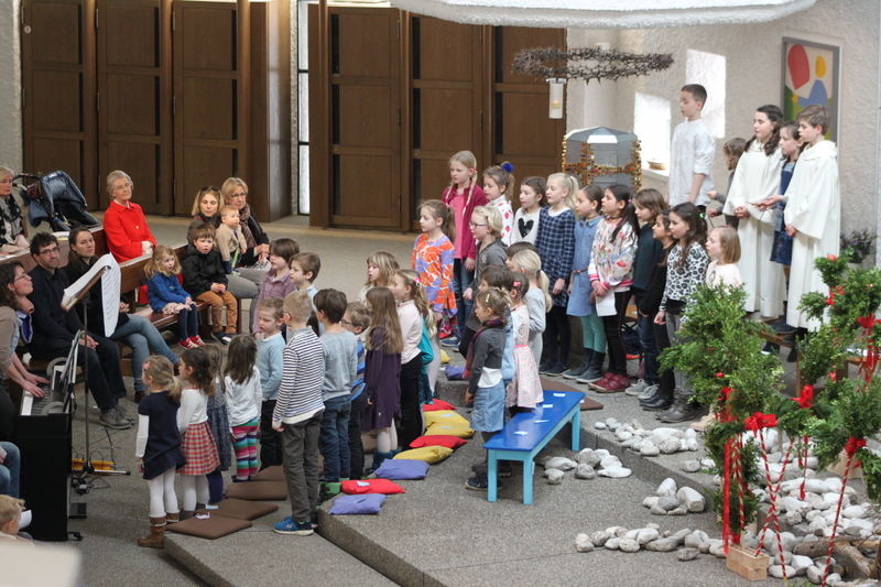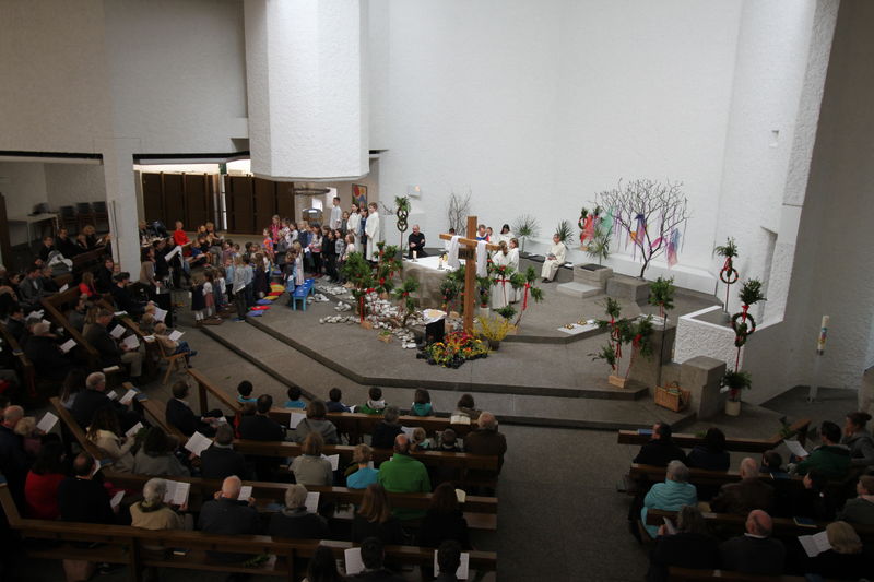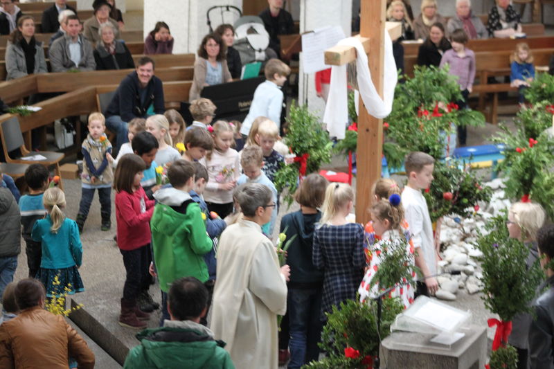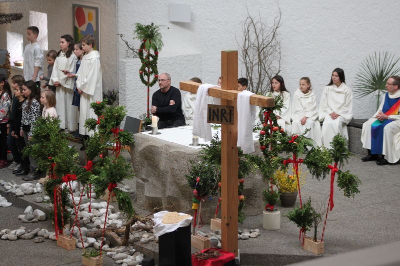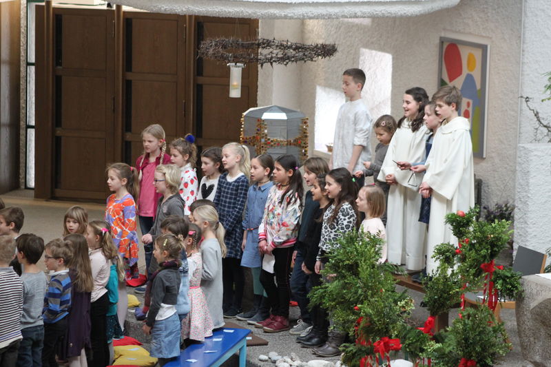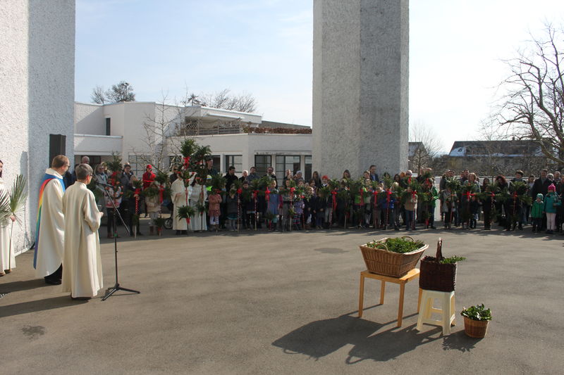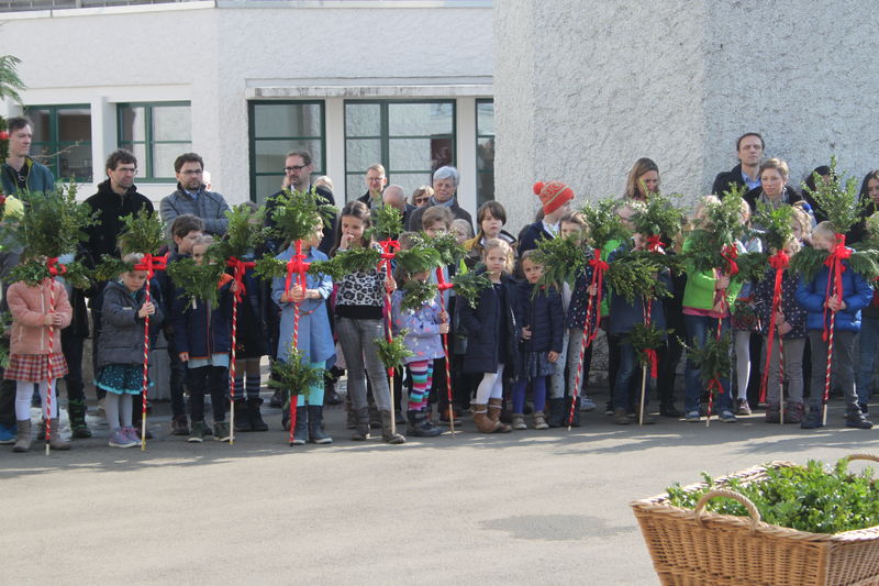 Viele Familien und Kinder kamen um den Einzug der gebundenen Palmen zu bestaunen. Viel Freude bereitete auch der Kinderchor.