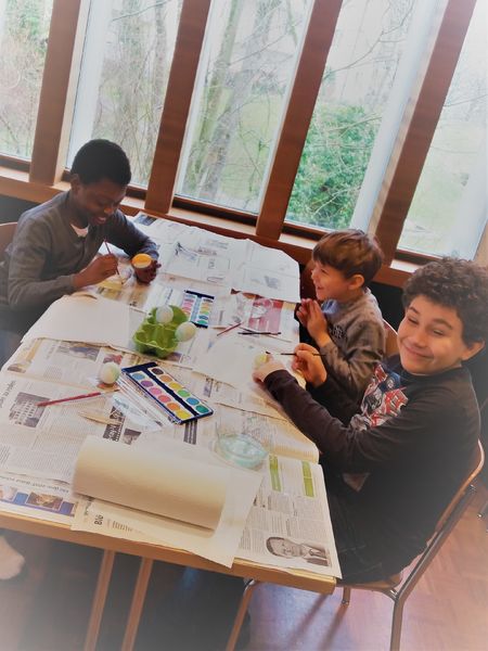 Die Ministranten der Pfarrei Heiligkreuz verbrachten am Ostersamstag einen kurzweiligen Morgen im Pfarreiheim. Dabei haben wir uns über die Ostergeschichte unterhalten und wie wir Ostern in den Gottesdiensten feiern. Beim Ostereier bemalen war Kreativität gefragt und der Ehrgeiz wurde beim rohe Eier verpacken geweckt. In zwei Gruppen wurde je ein rohes Ei mit einfachem Material so gut verpackt, dass es möglichst nicht zerbricht oder Risse kriegt, wenn es 3 Meter von einer Mauer herunterfällt. Leider hatte diesmal keines der beiden Eier Glück. Für nächstes mal haben sich die Ministranten vorgenommen, die Eier vom Kirchturm fallen zu lassen. Wir sind gespannt ob das klappt!