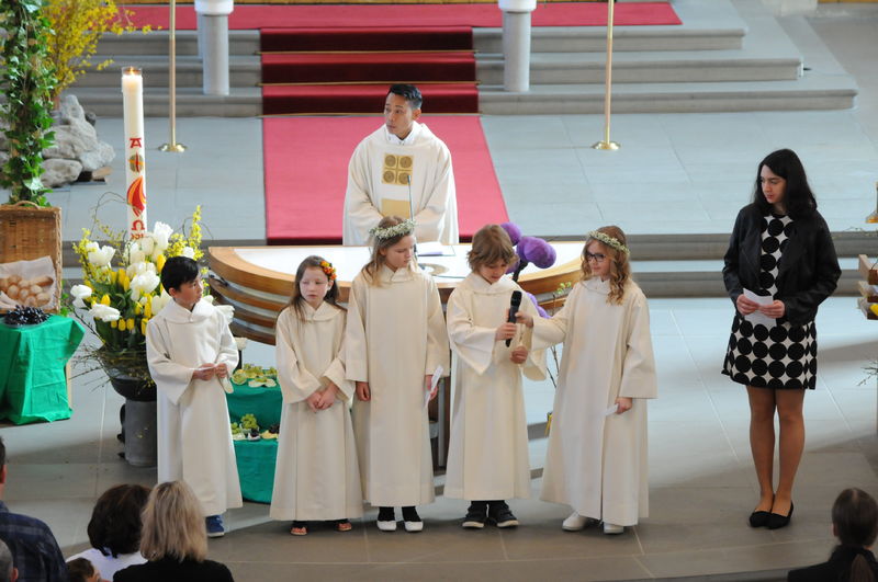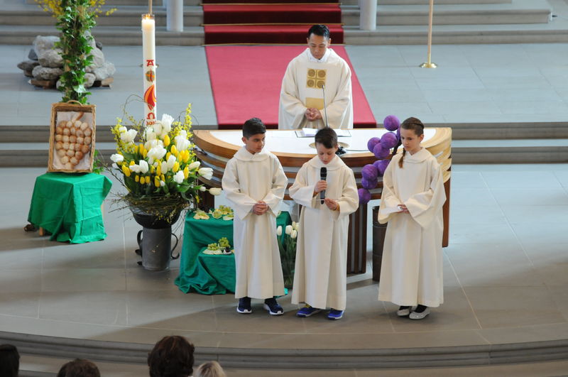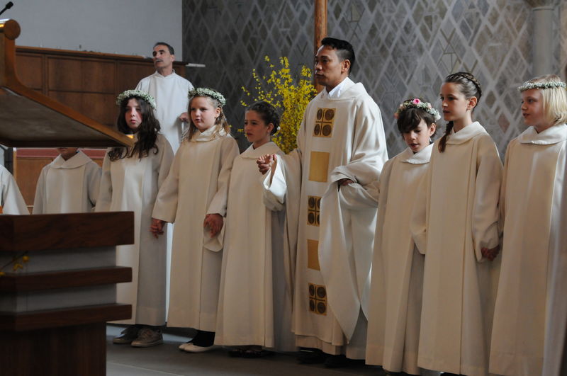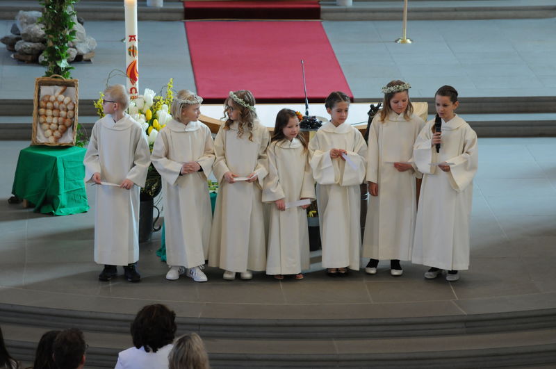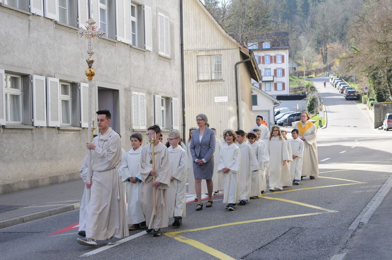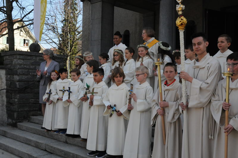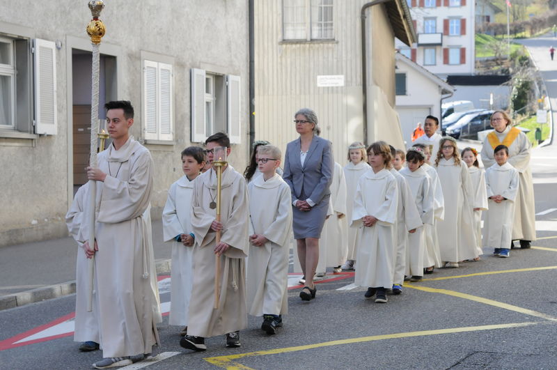 Bei wunderschönem Wetter durften heute 17 Kinder in St. Georgen unter der Begleitung der Musikgesellschaft in die Kirche einziehen, um dort gemeinsam mit Familien und Pfarreimitgliedern das Fest des Weissen Sonntags zu feiern. Mit diesem Festgottesdienst wurden sie in die grosse Mahlgemeinschaft der Kirche aufgenommen.