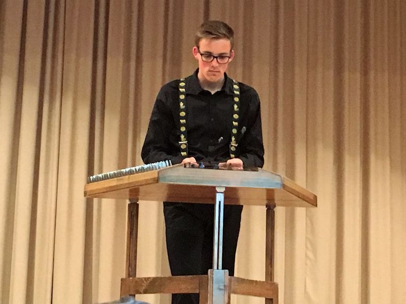 Hackbrett Spieler Calvin Rüegg aus Heiden an der Hauptversammlung